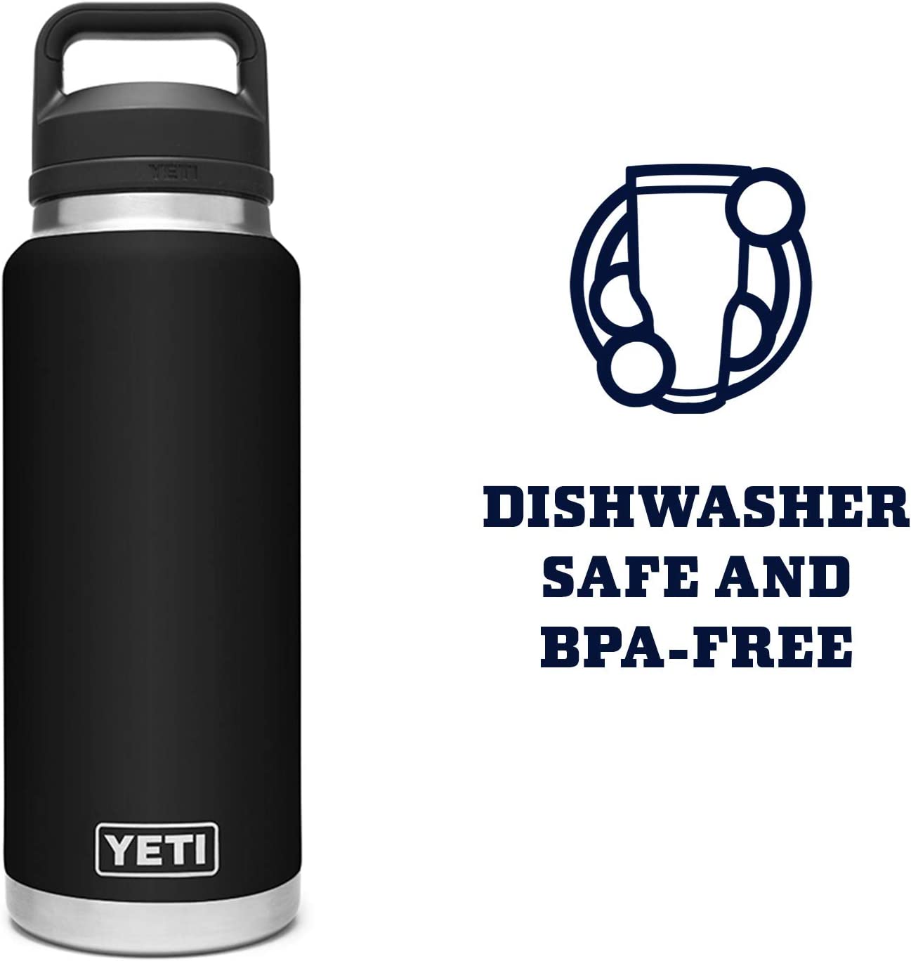 YETI Rambler 36 oz Bottle. Vacuum Insulated. Stainless Steel with Chug Cap. Black