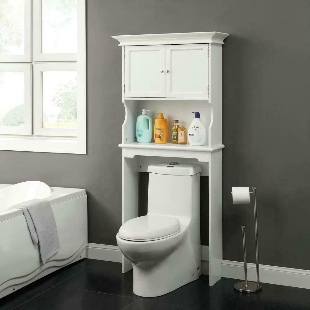 Home Decorators Collection Hampton Harbor 24.25 in. W x 66.5 in. H x 10.5 in. D White Over-the-Toilet Storage