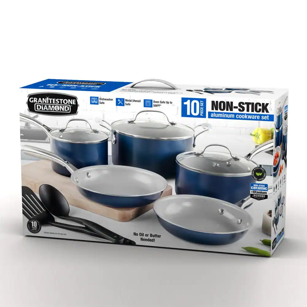 GRANITESTONE 2228 10-Piece Aluminum Ultra-Durable Non-Stick Diamond Infused Cookware Set with Glass Lids