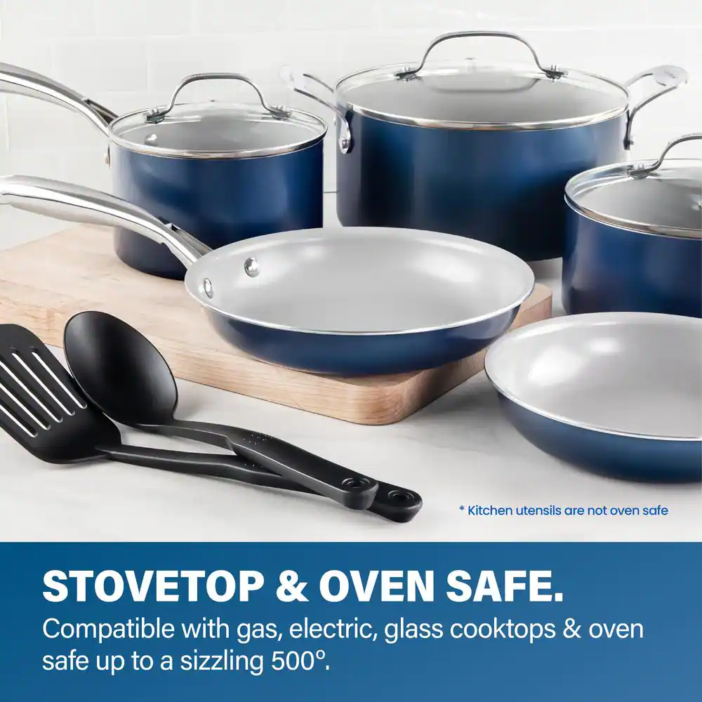 GRANITESTONE 7036 Classic Blue 10-Piece Aluminum Ultra-Durable Non-Stick Diamond Infused Cookware Set with Glass Lids
