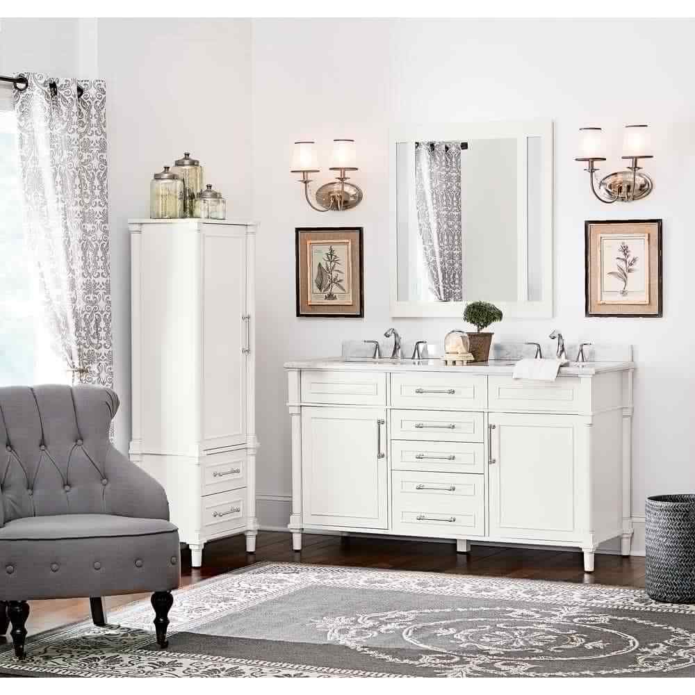 Home Decorators Collection Hampton Harbor 25 in. W x 14 in. D x 52-1/2 in. H Linen Cabinet with Drawer in White