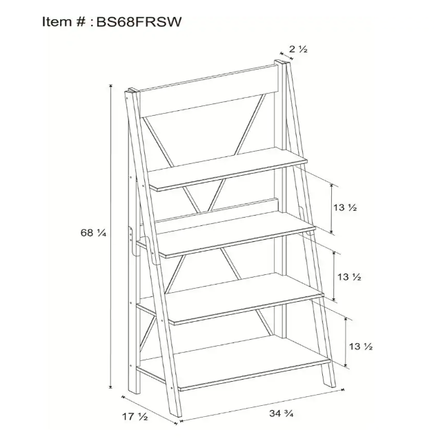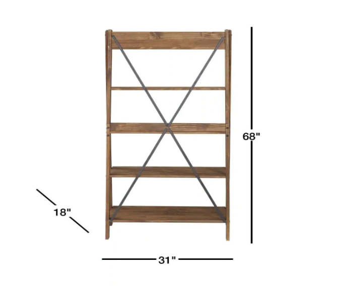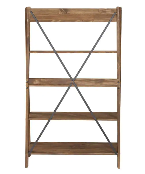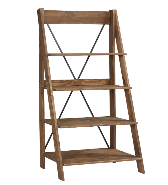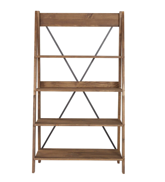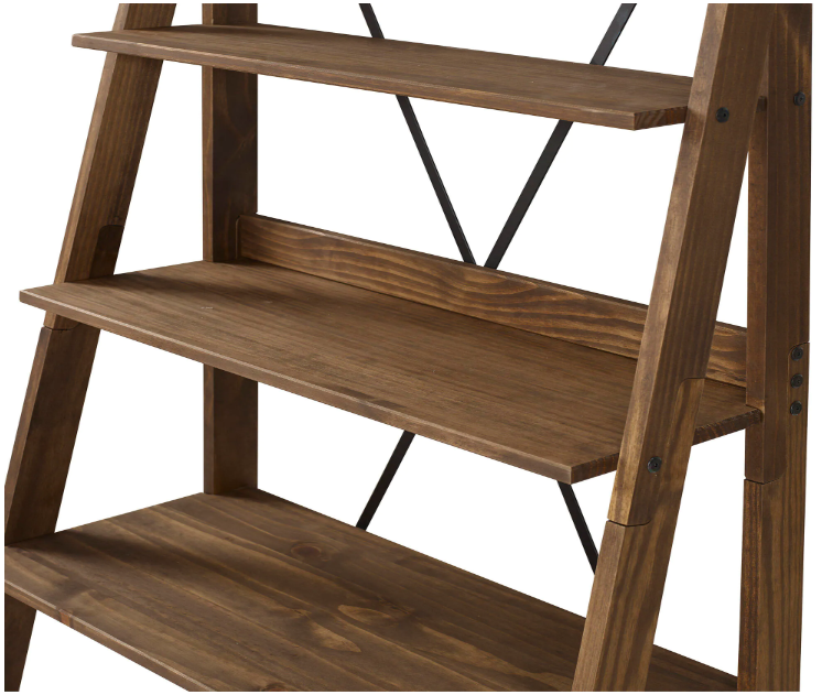 Welwick Designs 68 in. Brown Wood 4-shelf Ladder Bookcase with Open Back