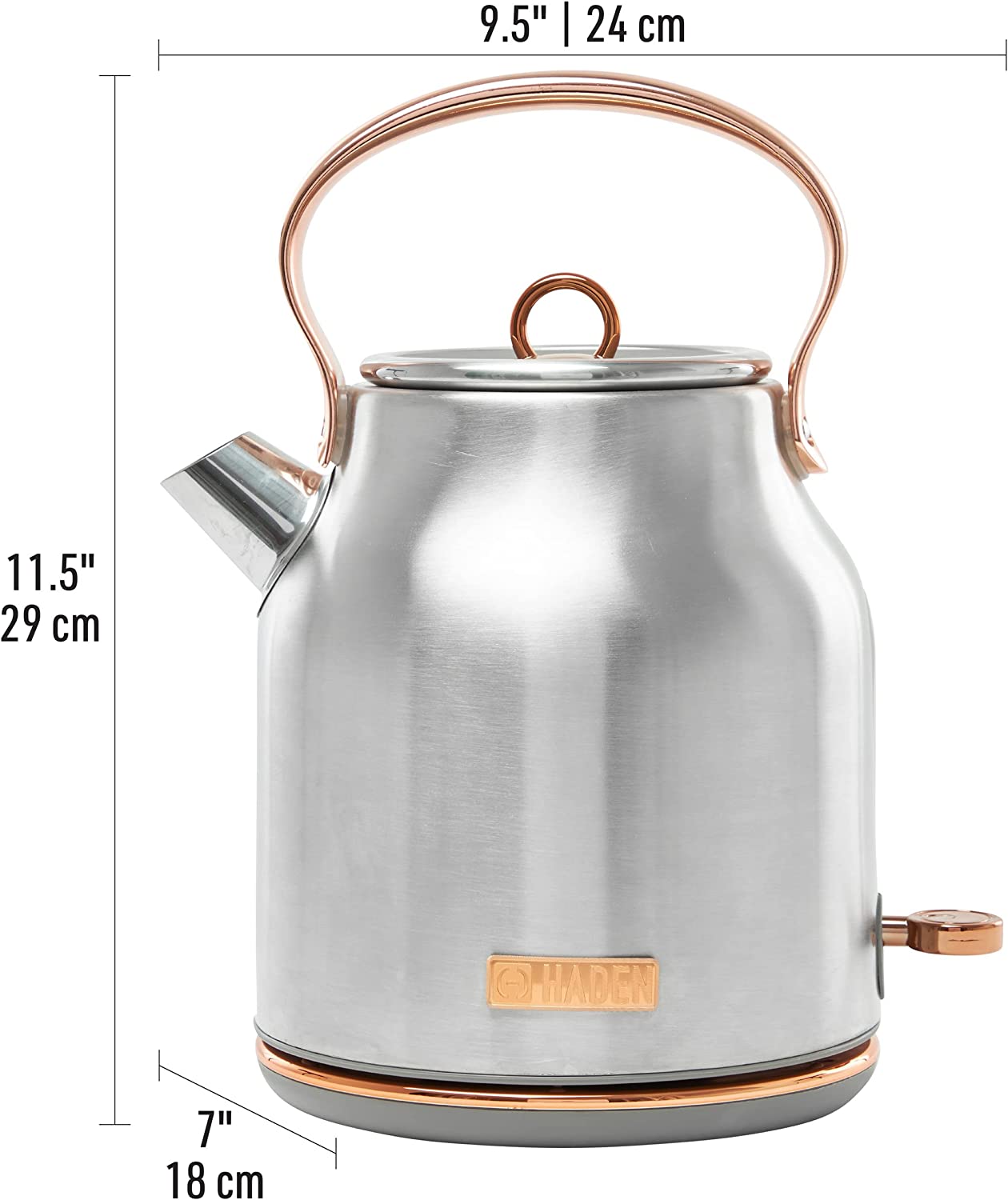 HADEN 75103 Heritage 1.7 l 7-Cup Steel and Copper Cordless Stainless Steel Retro Electric Kettle with Auto Shut-Off