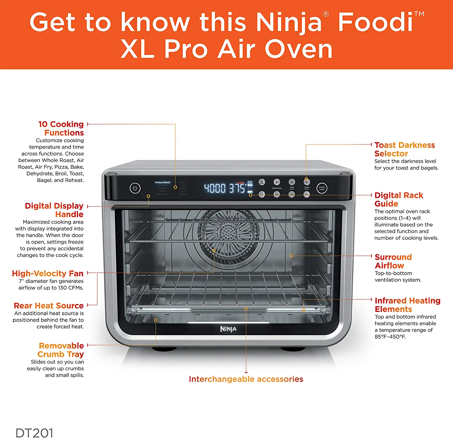 Ninja DT201 Foodi Air Fry Oven 6-Slice Stainless Steel Convection Toaster Oven (1800-Watt)