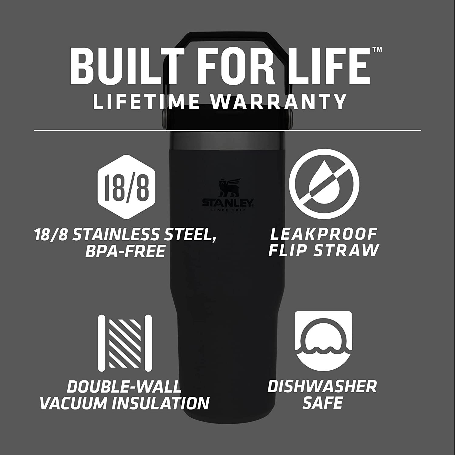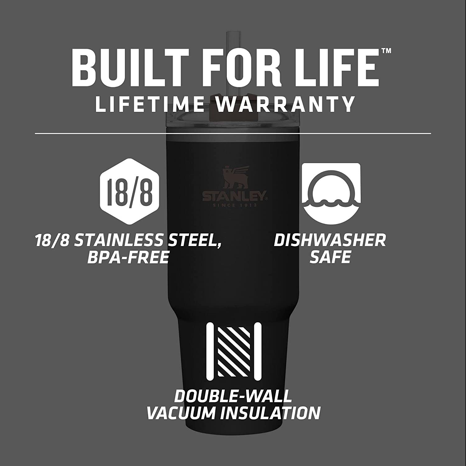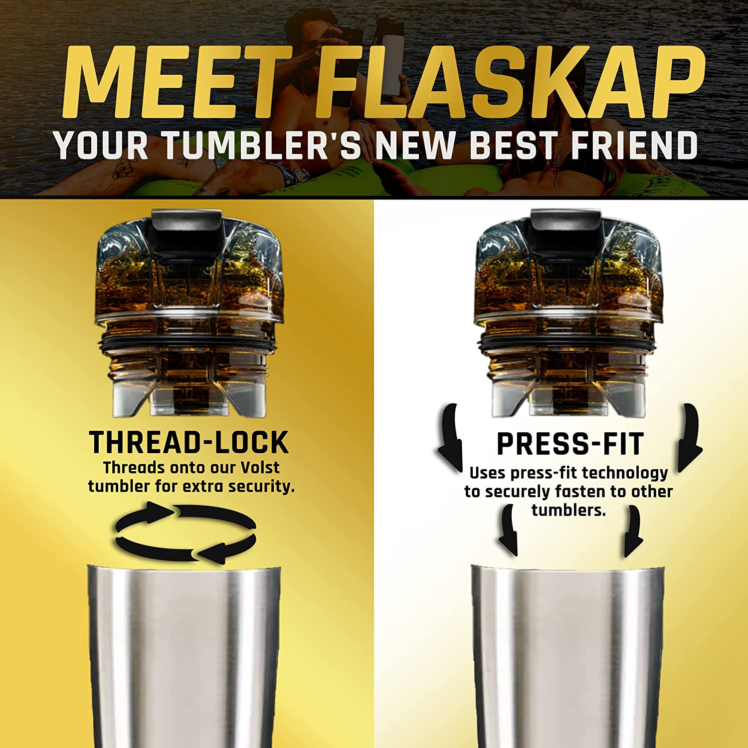 FlasKap VOLST 22 Insulated Tumbler with Standard Lid | Double-Wall Vacuum Insulated - Leak-Proof. Cup Holder Friendly. Fits MADIC 6 (22 oz. Black)