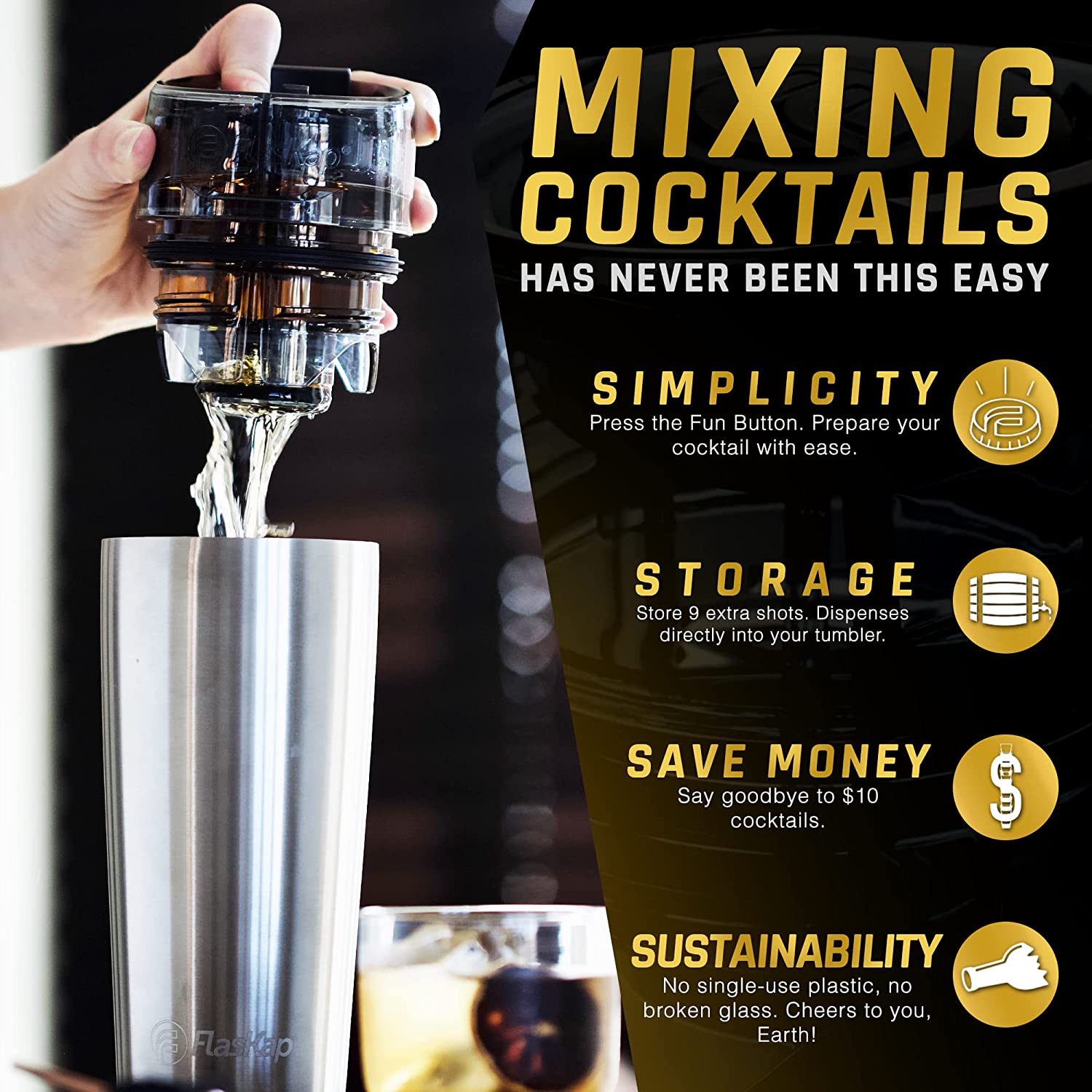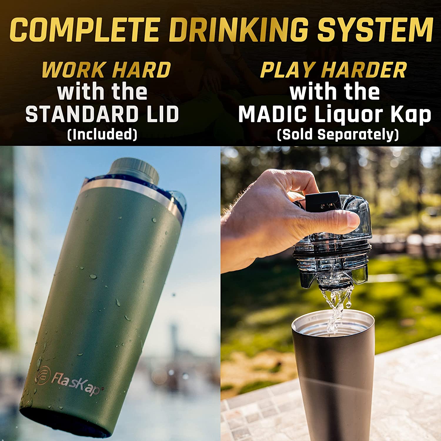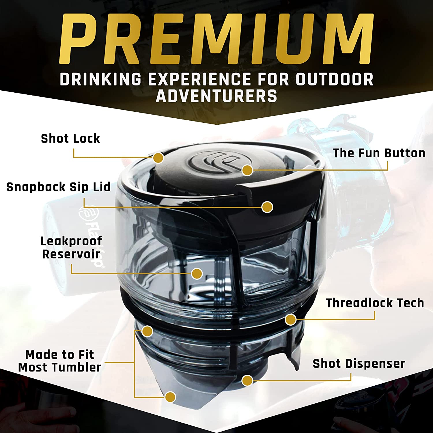 FlasKap MADIC 9 - 30 oz Tumbler Lid | Liquor Kap Reserve Lid | Splash Resistant Replacement Lid for Tumblers | Compatible with Most 30 oz Insulated Tumblers (9 oz Capacity. Black)