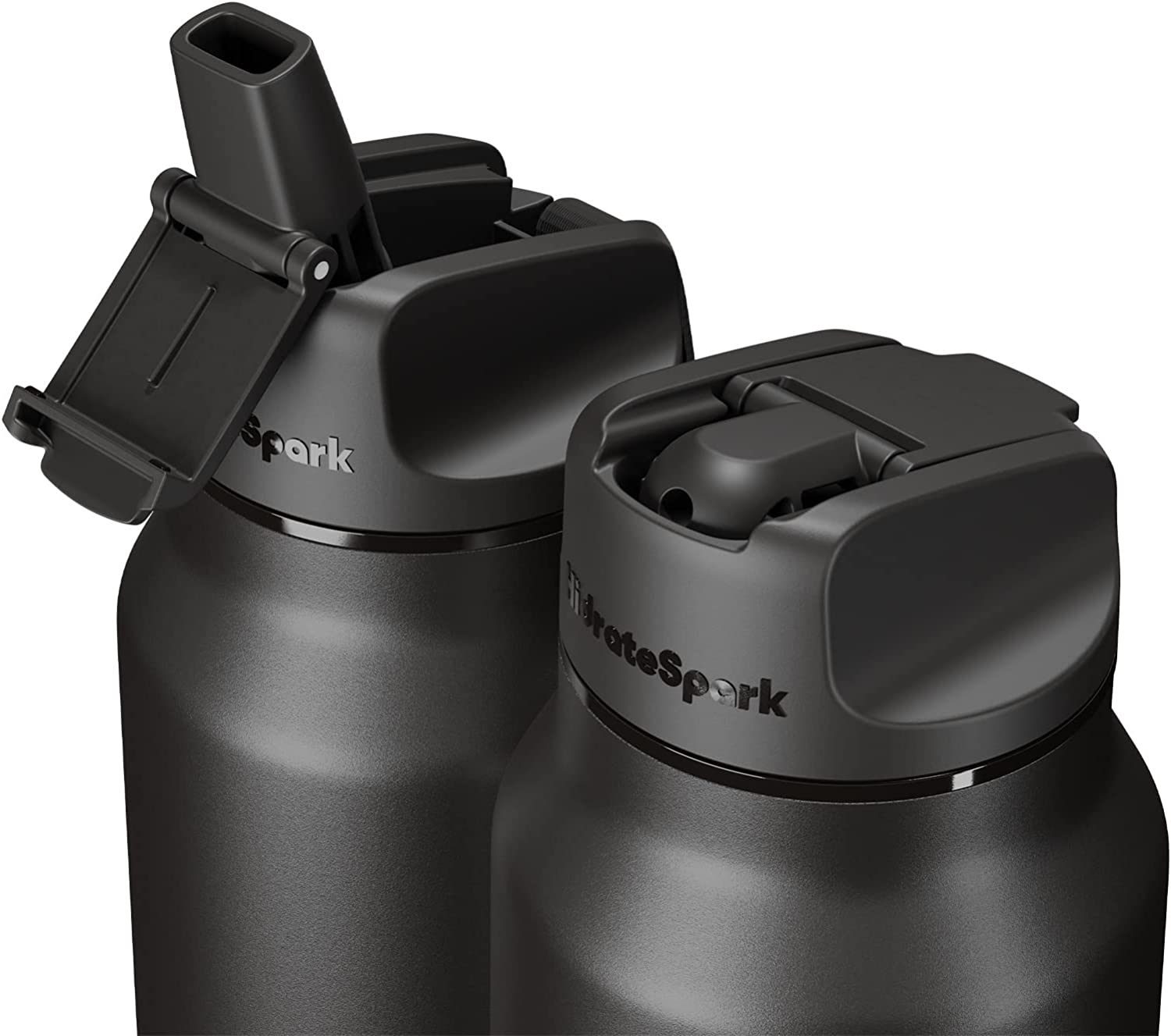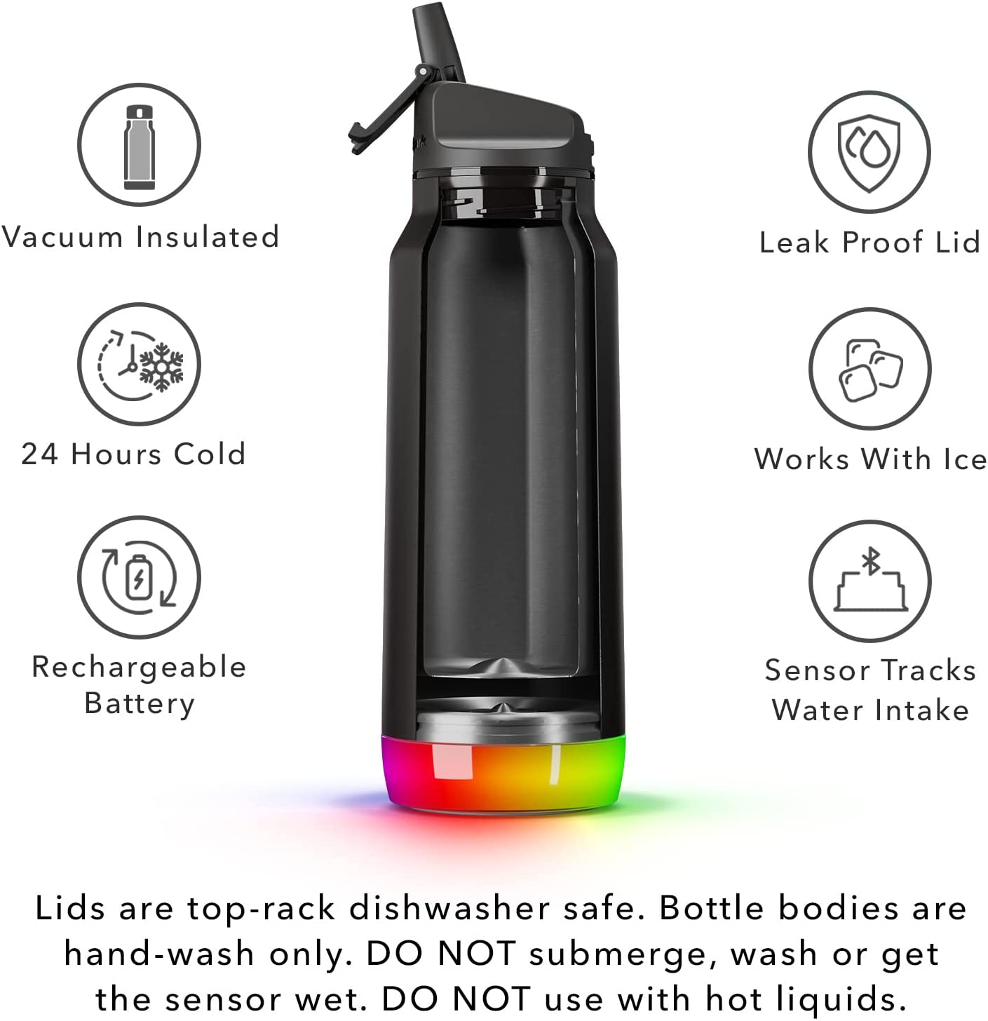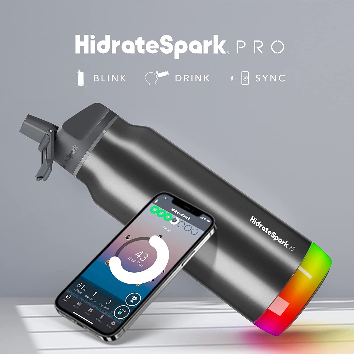 HidrateSpark PRO 32oz Smart Water Bottle Stainless Steel - Tracks Water Intake & Glows to Remind You to Stay Hydrated . Straw Lid. Black