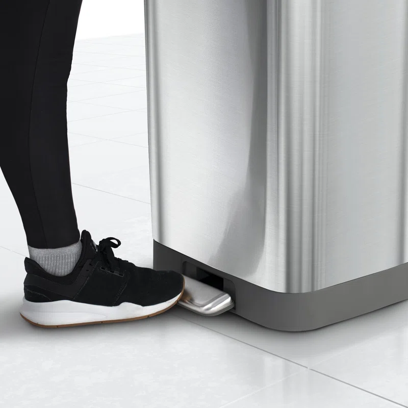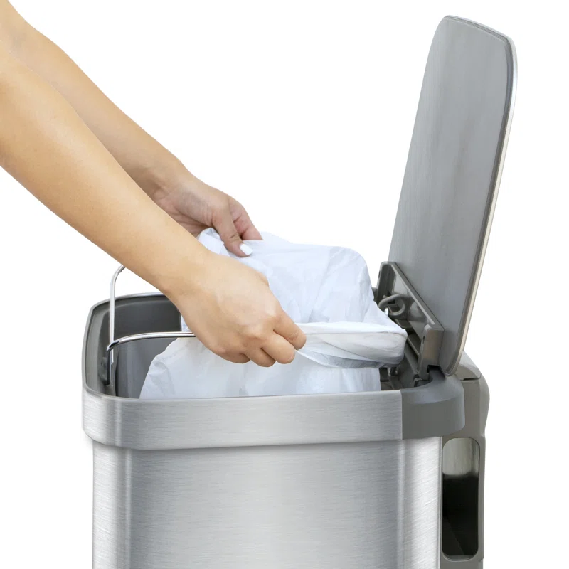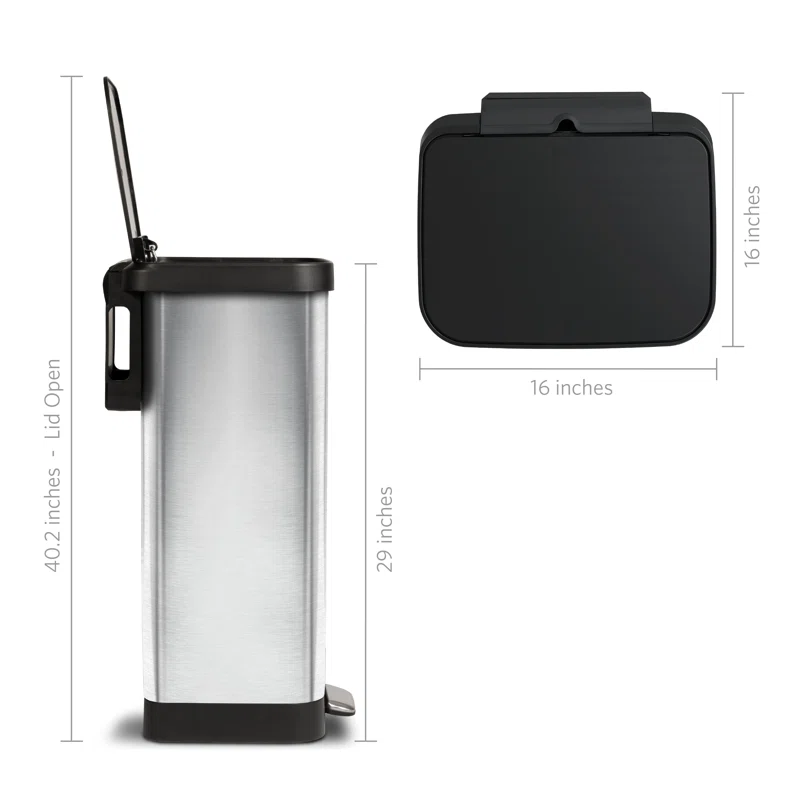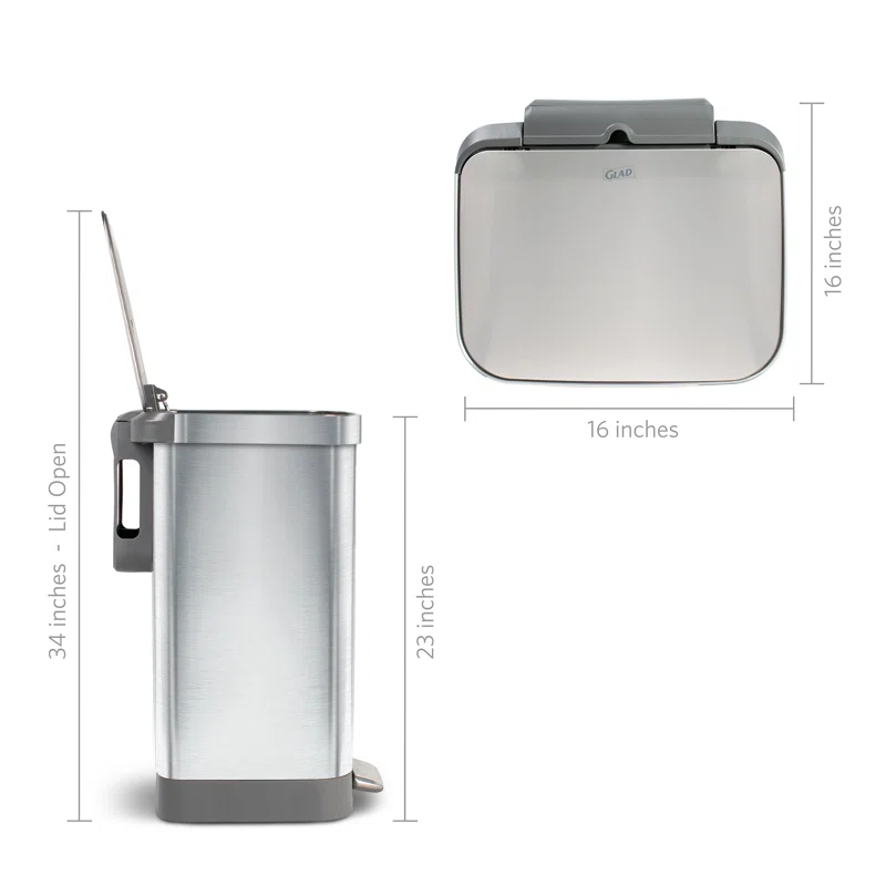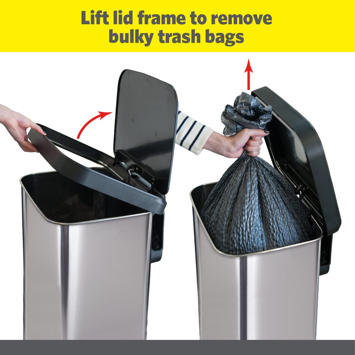 Glad GLD-74525 13 Gal. ALL Stainless Steel Step-On Large Metal Kitchen Trash Can w/Clorox Odor Protection and Soft-Closing Lid