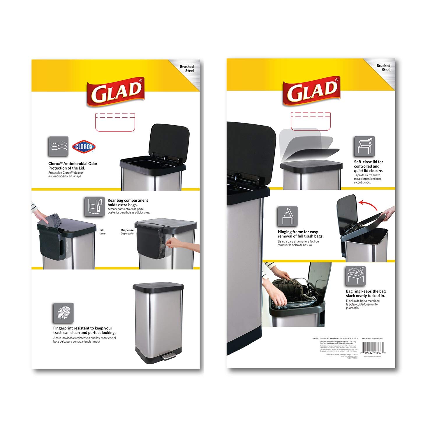 Glad GLD-74507 Stainless Steel Step Trash Can with Clorox Odor Protection | Large Metal Kitchen Garbage Bin with Soft Close Lid. Foot Pedal and Waste Bag Roll Holder. 20 Gallon. Stainless