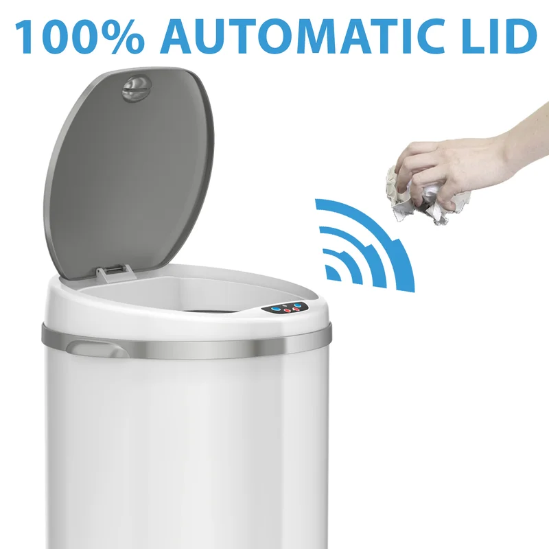 iTouchless MT13RW 13 Gal. Matte Pearl White Touchless Round Motion Sensing Trash Can with Odor Filter