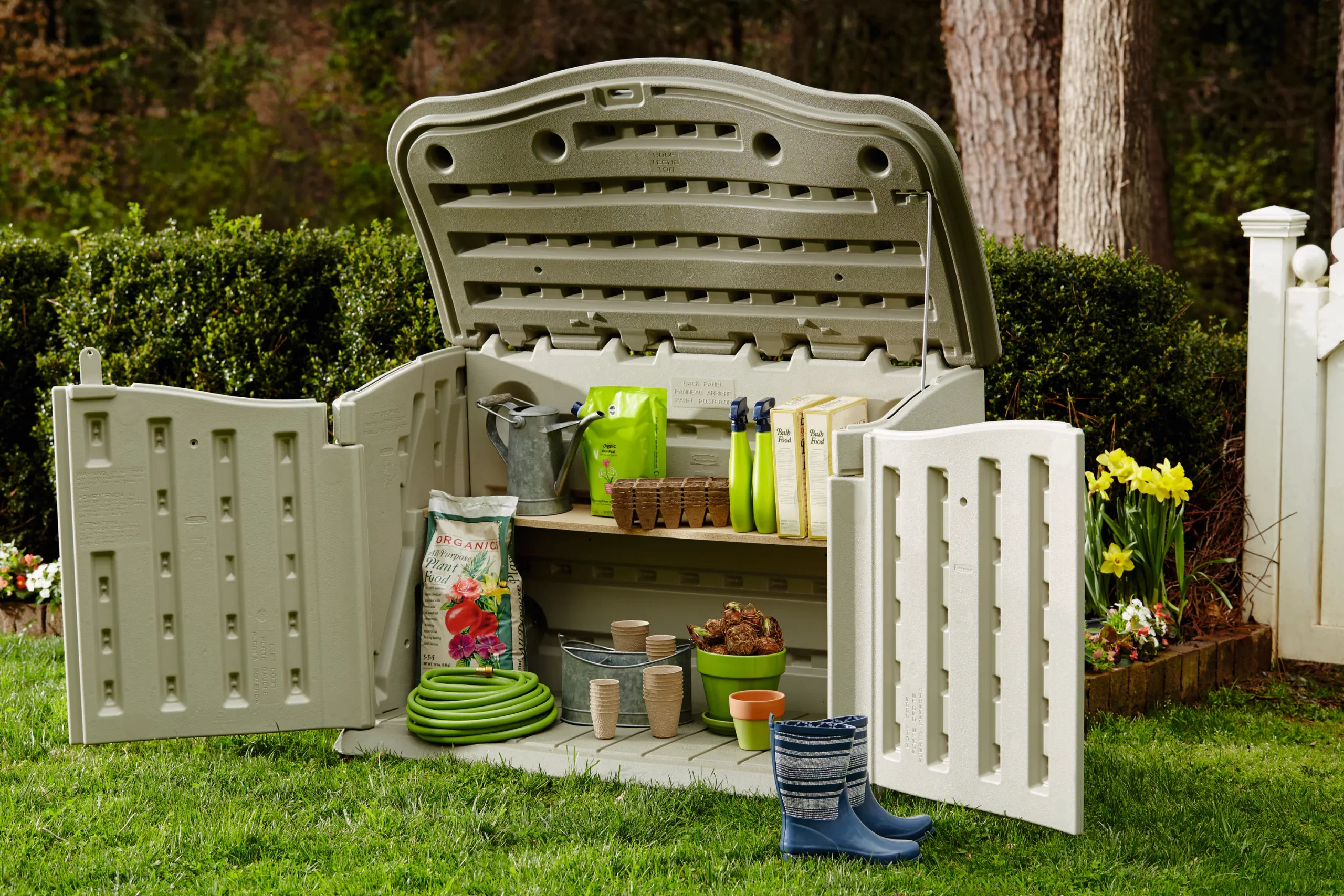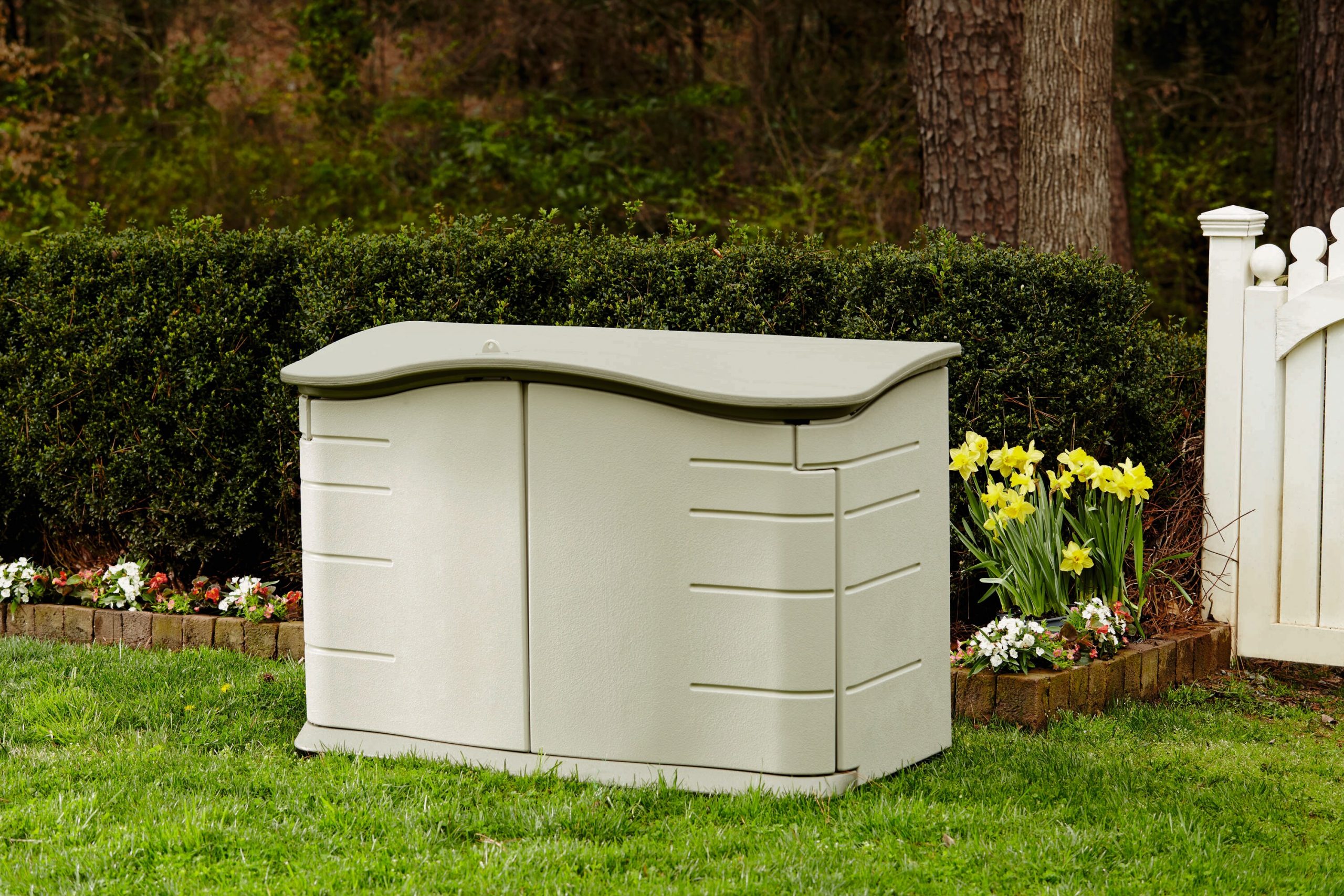 Rubbermaid FG374801OLVSS Olive/Sandstone Resin Outdoor Storage Shed (Common: 55-in x 28-in; Interior Dimensions: 47-in x 21-in)