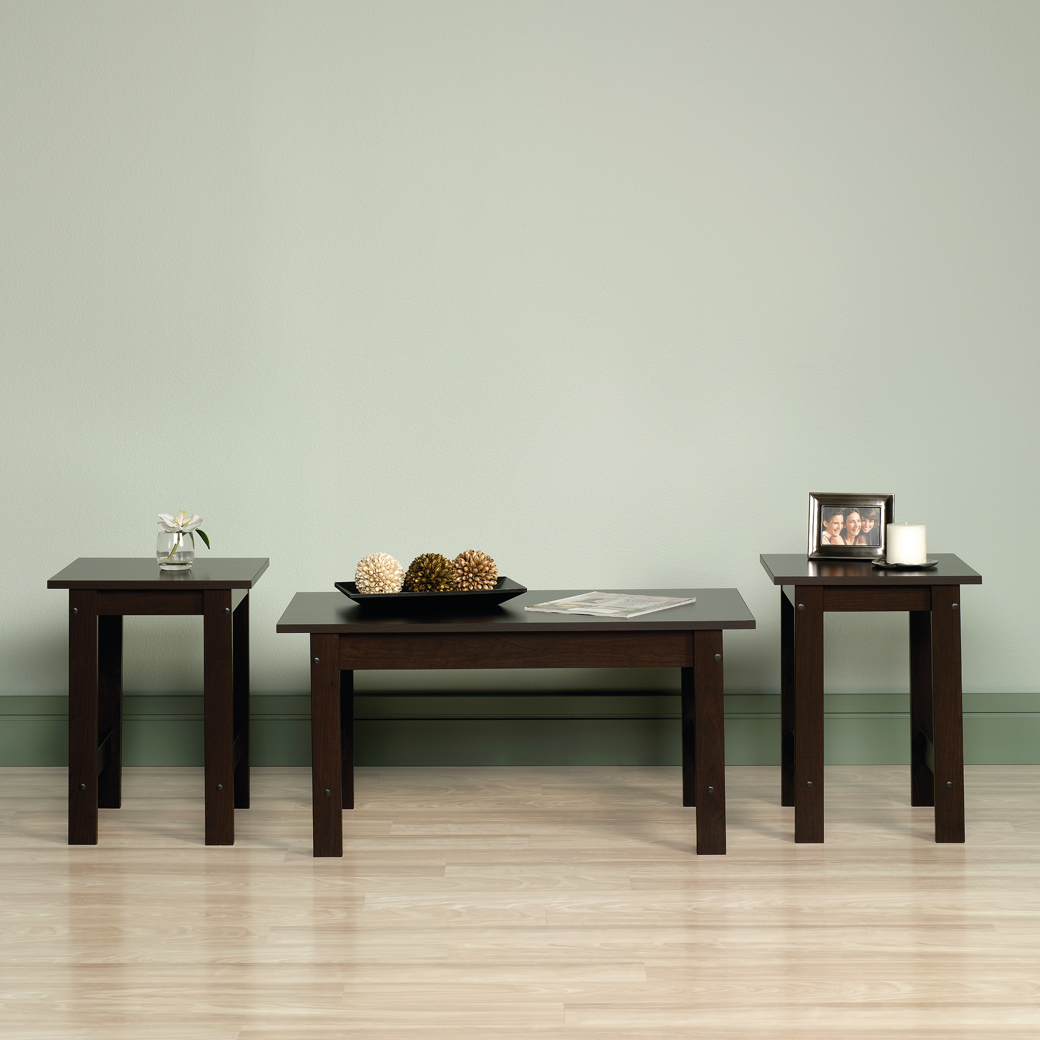 Sauder Beginnings 3-Piece Accent Table Set. Cinnamon Cherry Finish