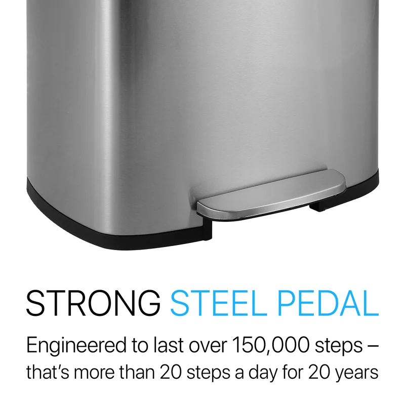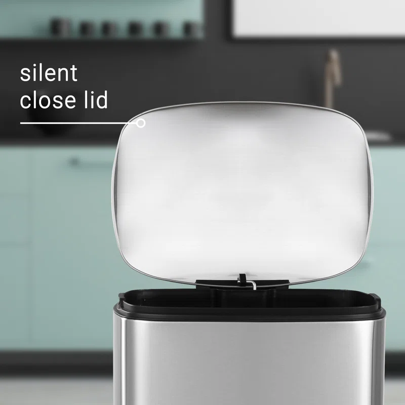 happimess HPM1006A Connor Rectangular 13 Gal. Stainless Steel Trash Can with Soft-Close Lid and Free Mini Trash Can