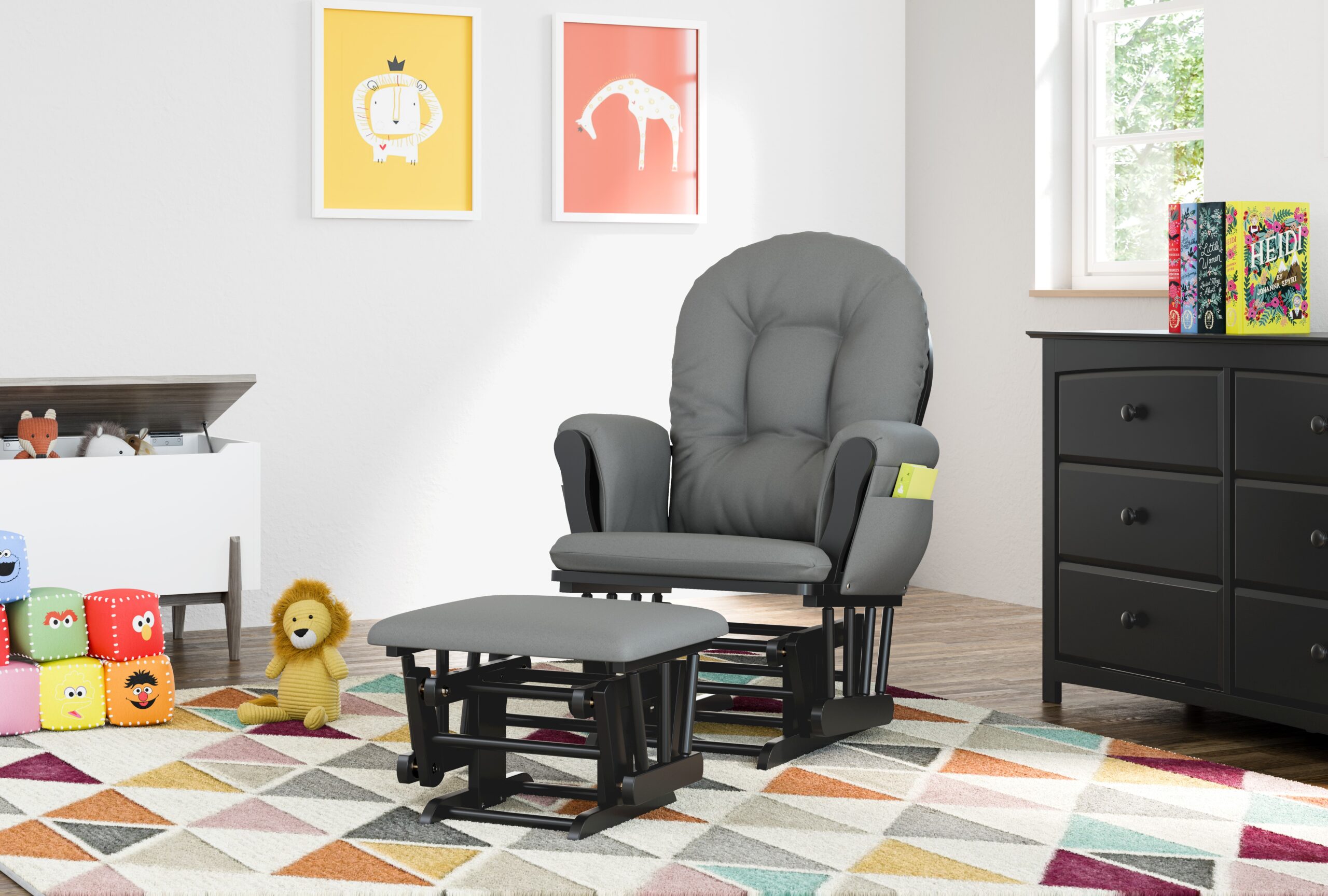 Storkcraft Hoop Nursery Glider and Ottoman. Black with Gray