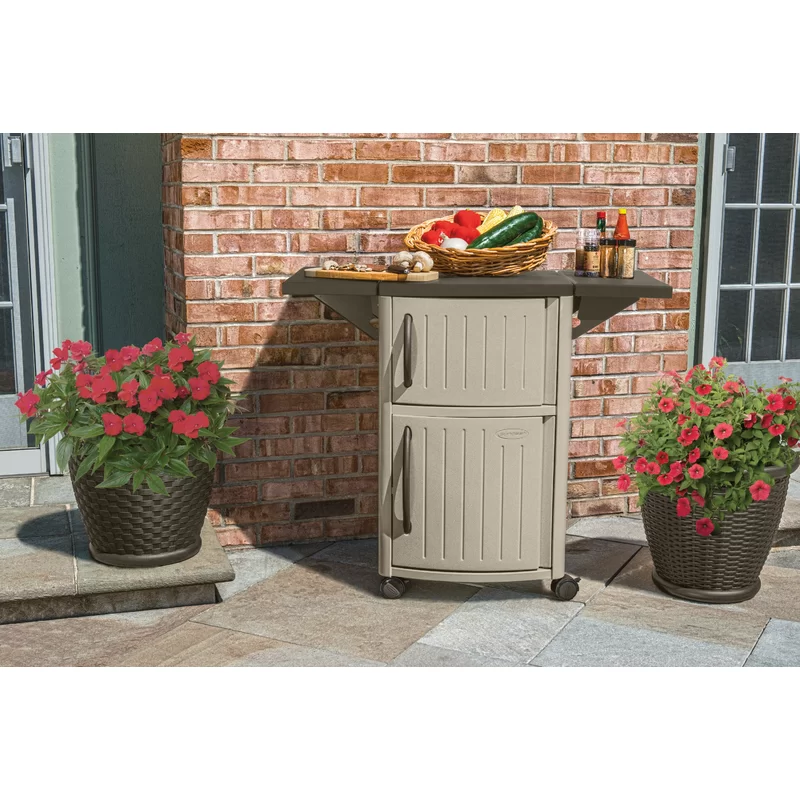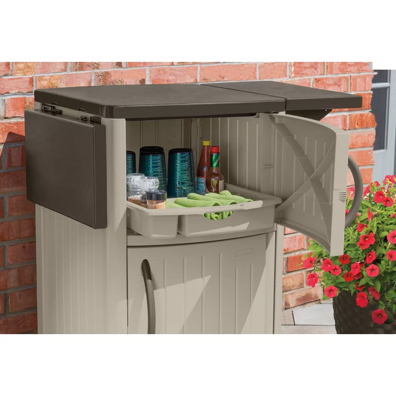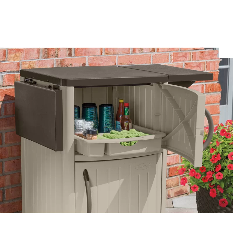 Suncast DCP2000 Outdoor Grilling Prep Station Table with Storage. Taupe/Brown