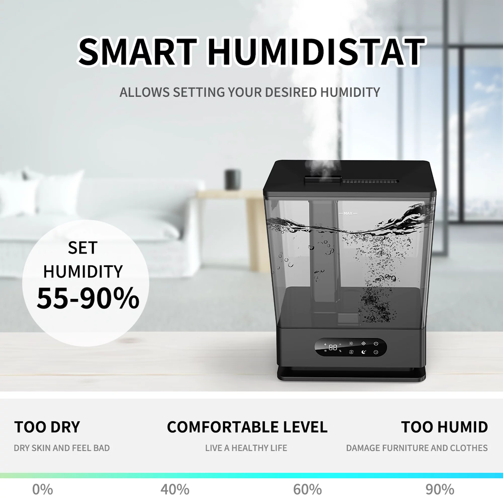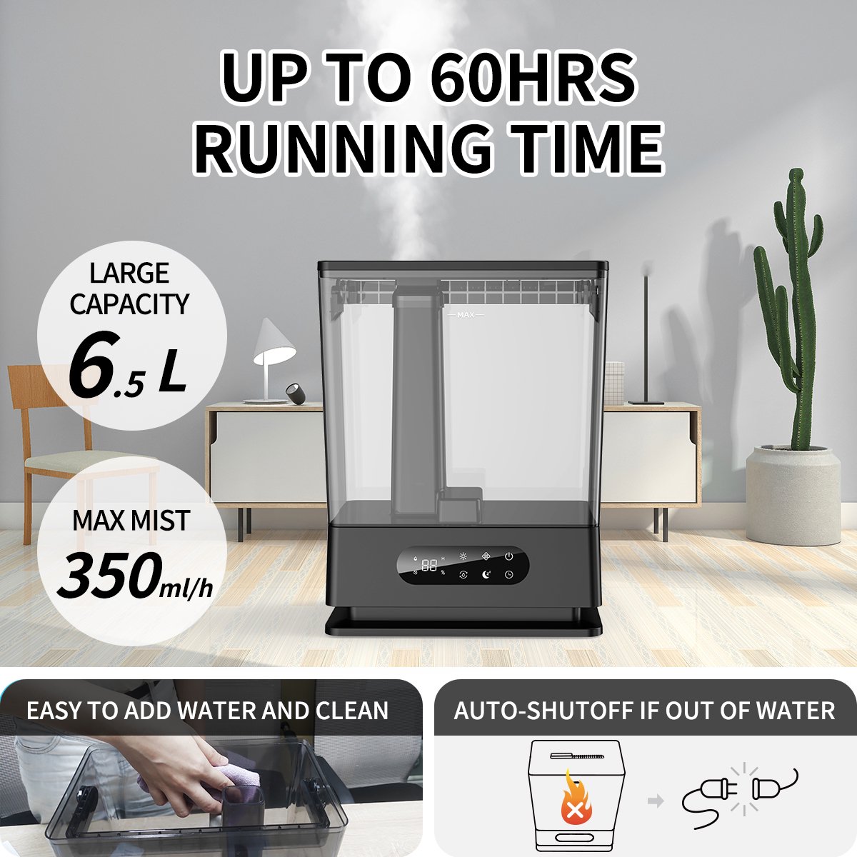 ALROCKET AK-JS06 6.5L Large Humidifier Cool Mist Humidifier for Home Black