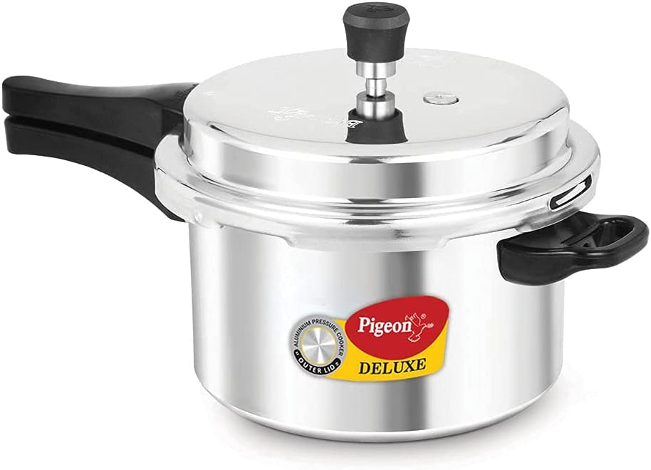 Pigeon 5 Quart Pressure Cooker. Olla de Presion. Gas & Induction Compatible. Pressure Pot for Instant Cooking of Veggies. Soup. Meat. Rice & Legumes. Indian Pressure Cooker 5 Liters. Aluminum. Silver