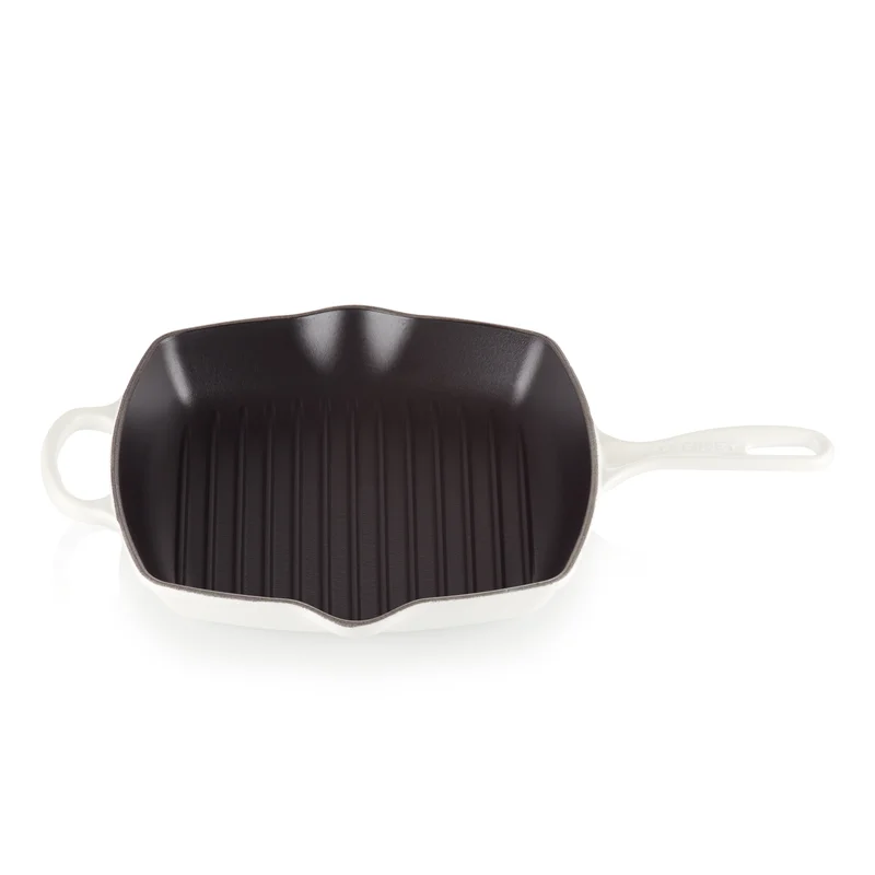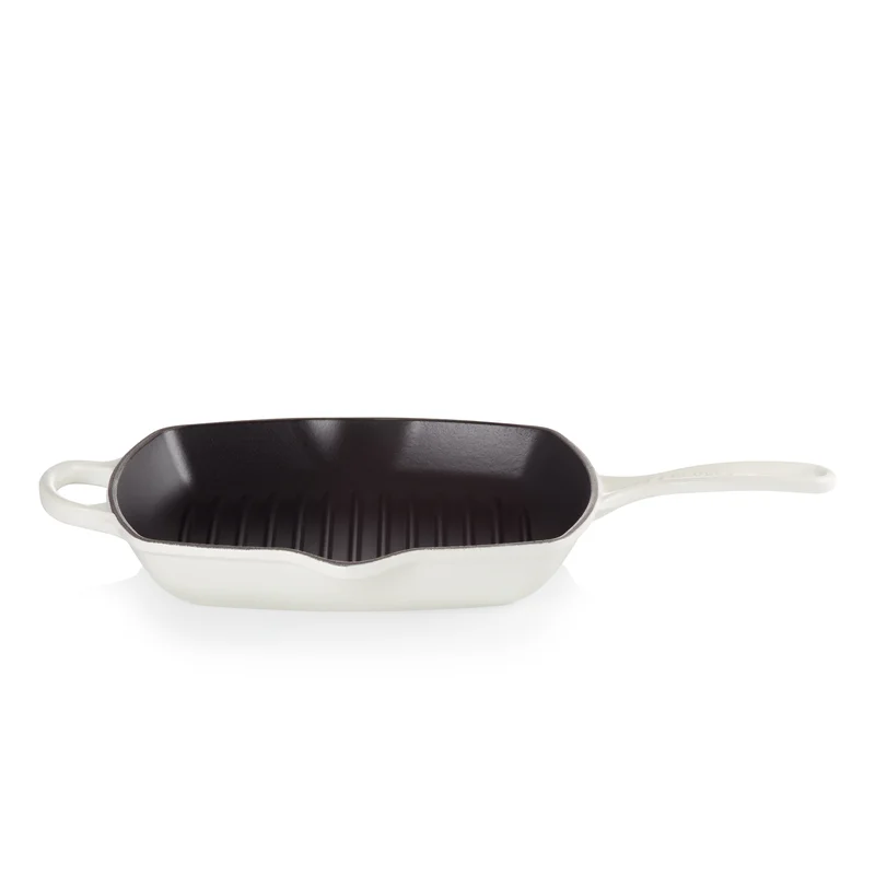 Le Creuset LS2021-2616 Enameled Cast Iron Signature Square Skillet Grill. 10.25″. White