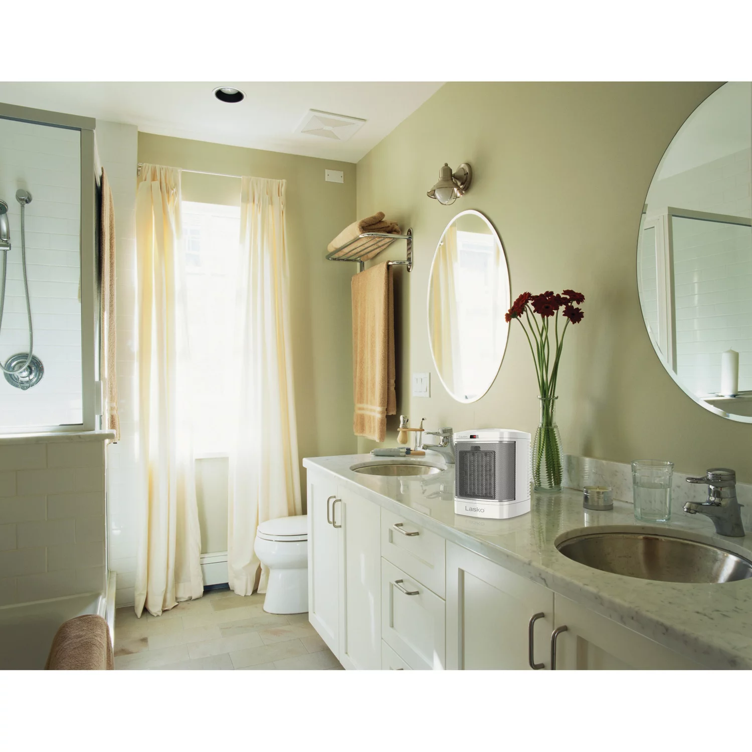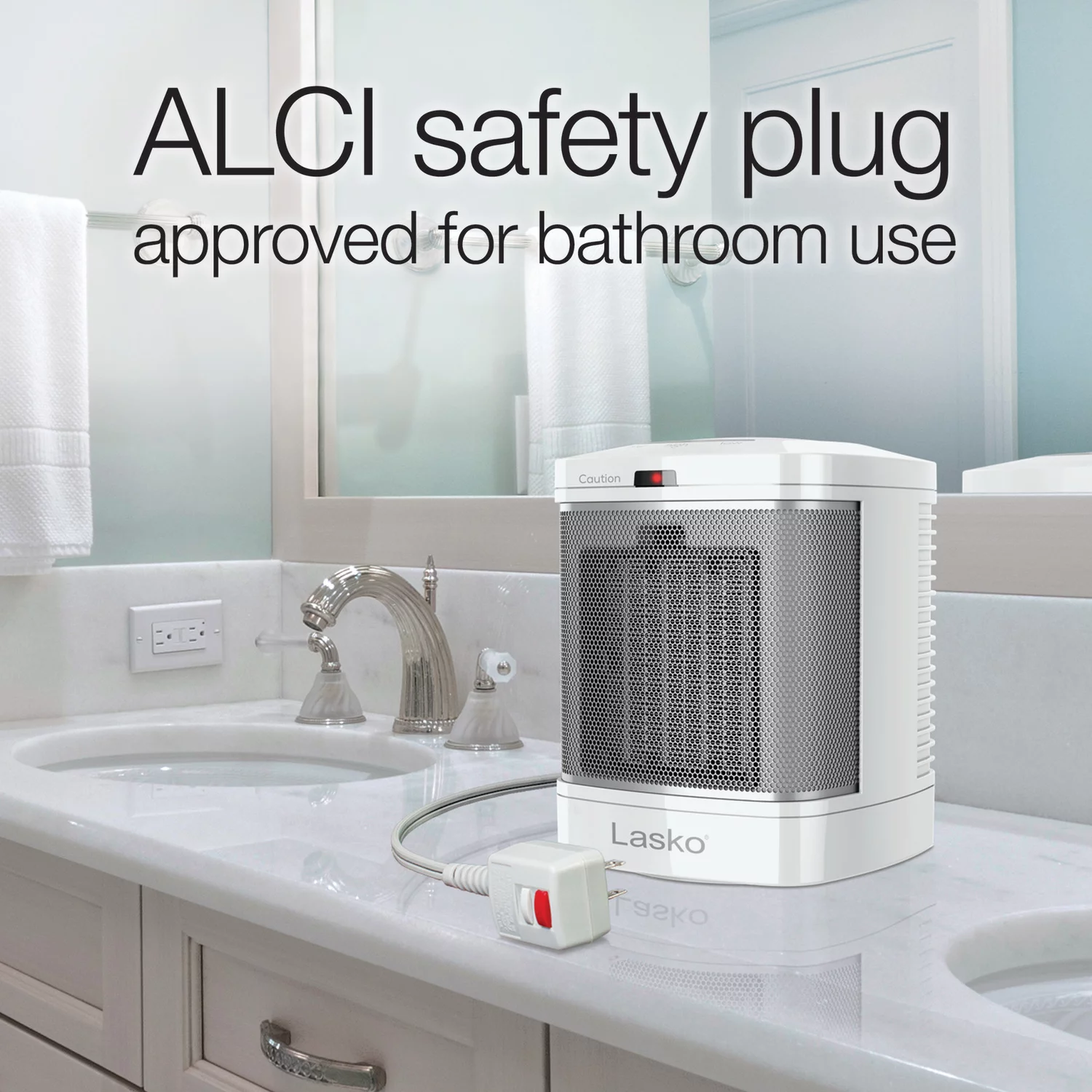 Lasko CD08200 1500W Bathroom Space Heater with ALCI Safety Plug and Timer. White