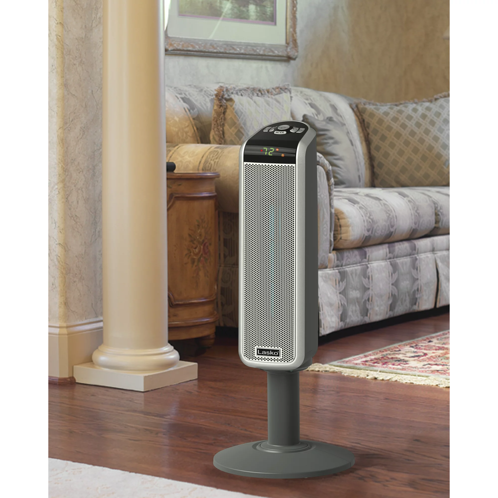 Lasko 1500W Ceramic Pedestal Space Heater with Remote. 5397. Black
