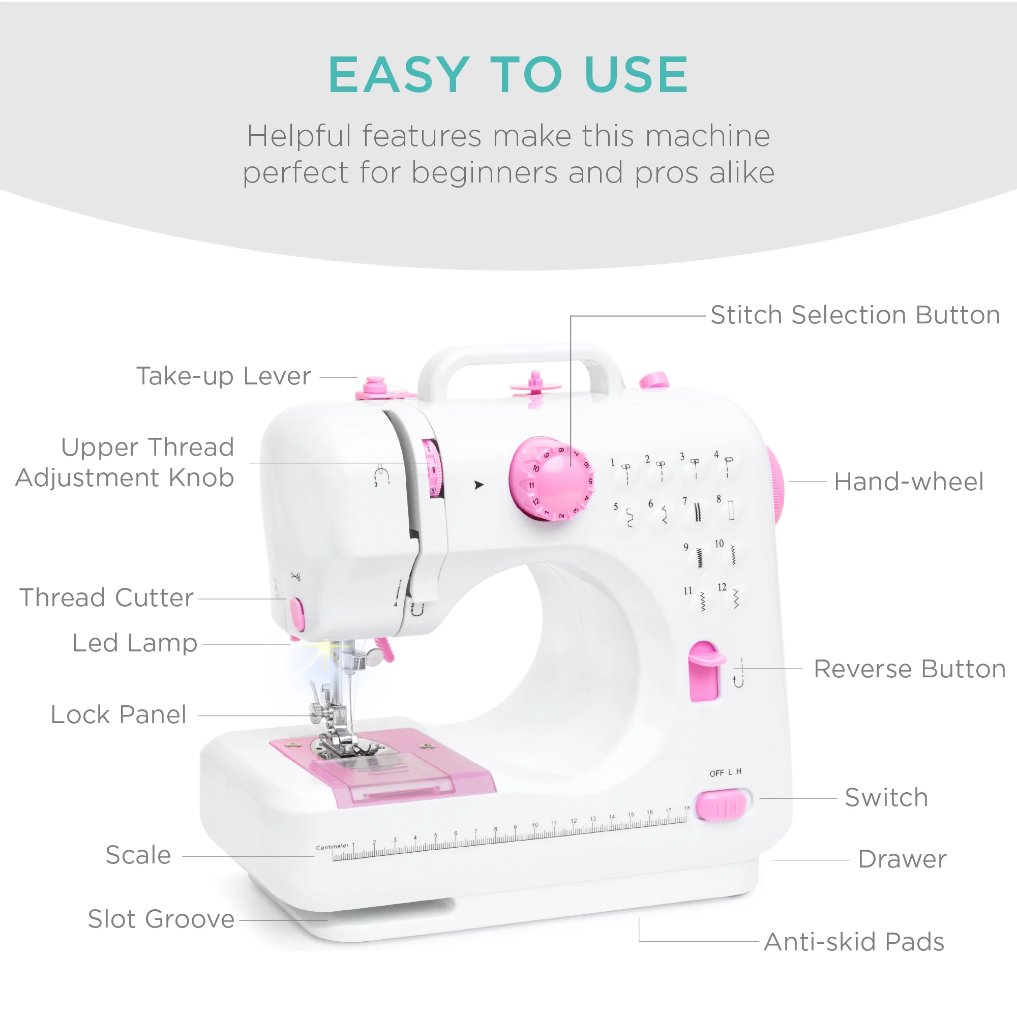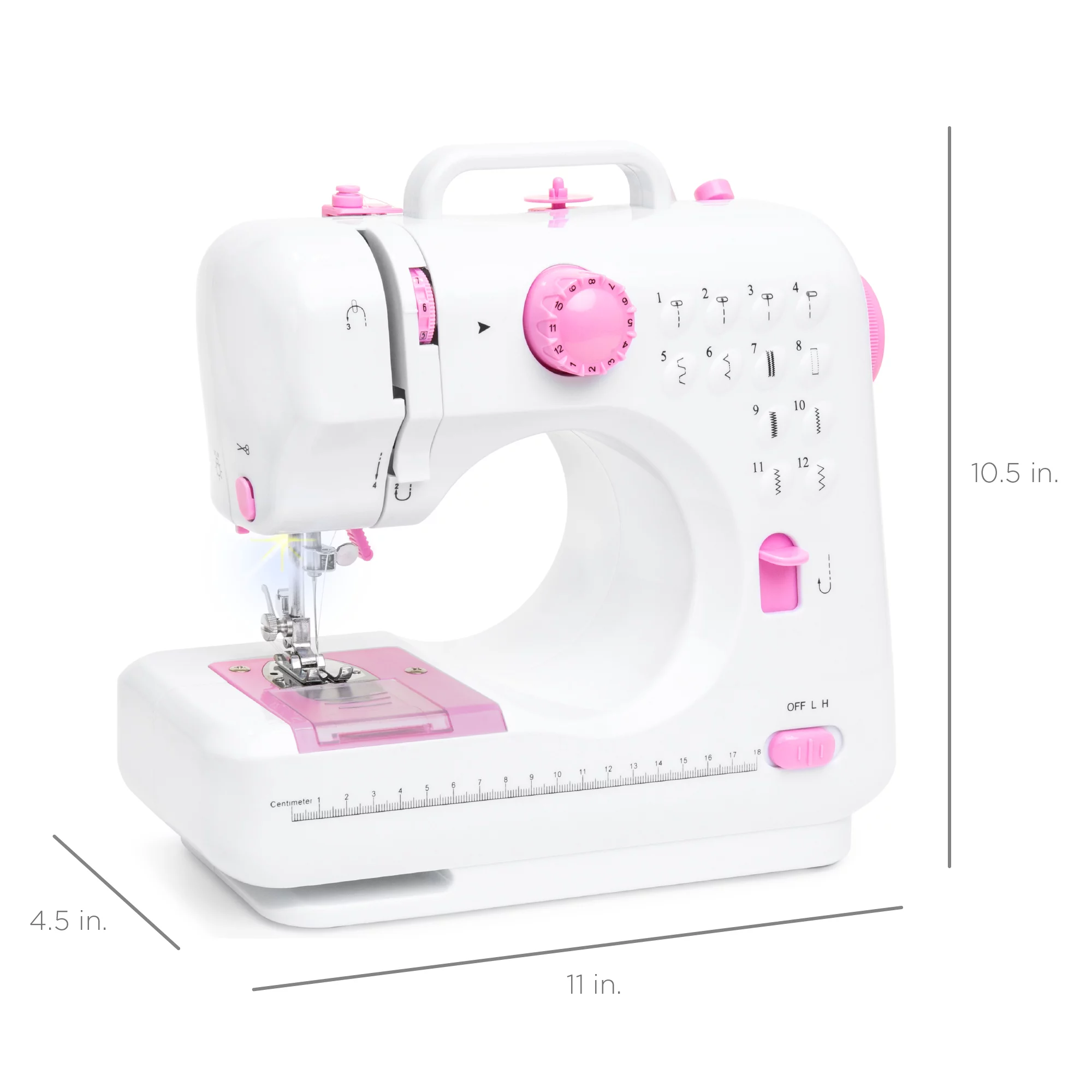 Best Choice Products 6V Portable Sewing Machine. 42-Piece Beginners Kit w/ 12 Stitch Patterns - Pink/White