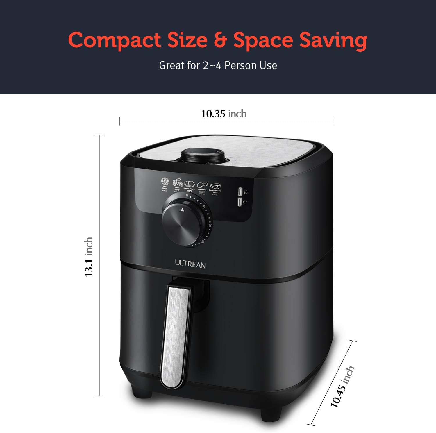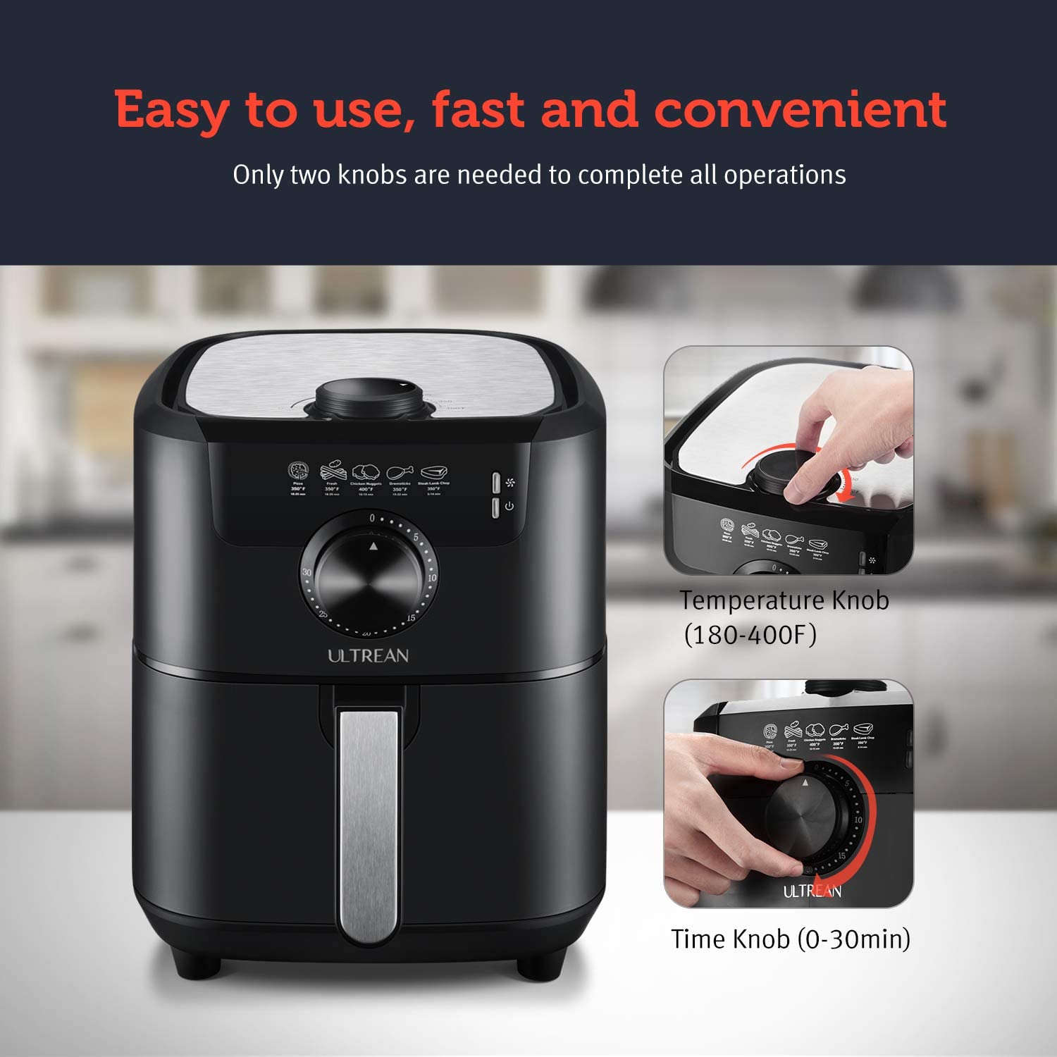 Ultrean Air Fryer. 4.2 Quart (4 Liter) Electric Hot Air Fryers Oven Oilless Cooker with LCD Digital Screen and Nonstick Frying Pot. ETL/UL Certified.1-Year Warranty.1500W (Black)