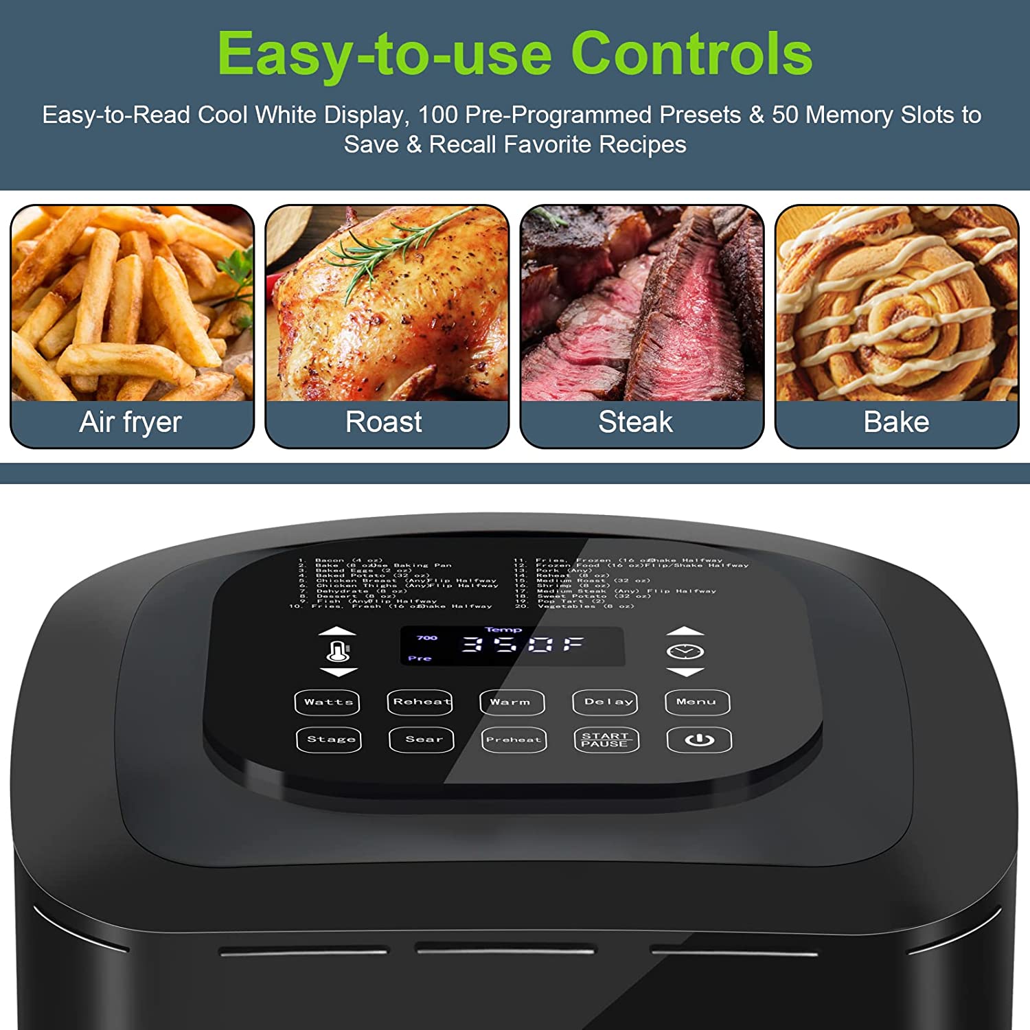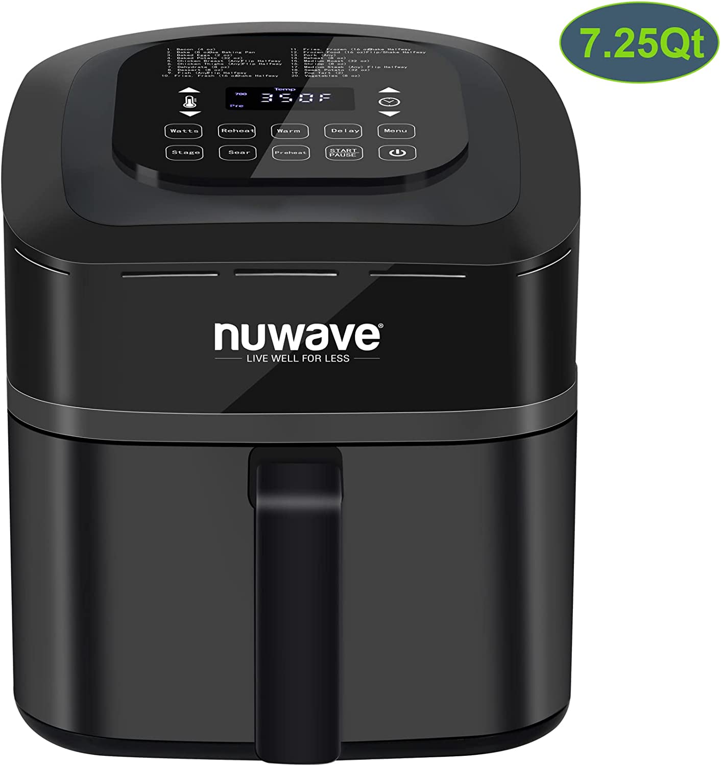 NUWAVE Brio 7-in-1 Air Fryer Oven. 7.25-Qt with One-Touch Digital Controls. 50°- 400°F Temperature Controls in 5° Increments. Linear Thermal (Linear T) for Perfect Results