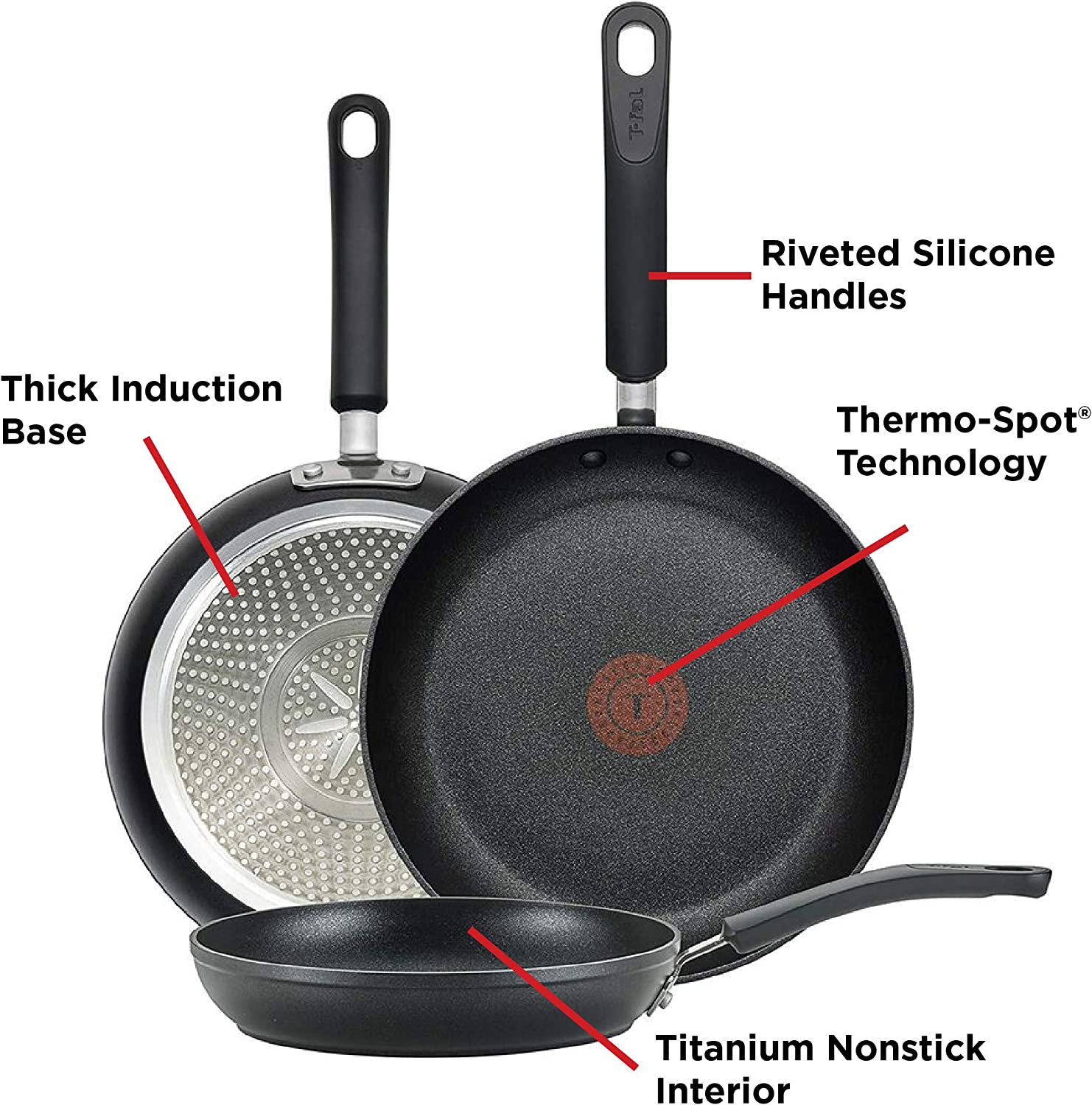 T-fal E938S3 Professional Total Nonstick Thermo-Spot Heat Indicator Fry Pan Cookware Set. 3-Piece. 8-Inch 10.5-Inch and 12.5-Inch. Black