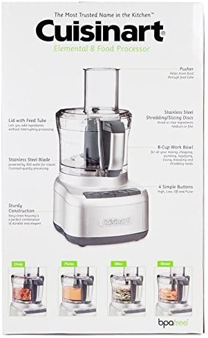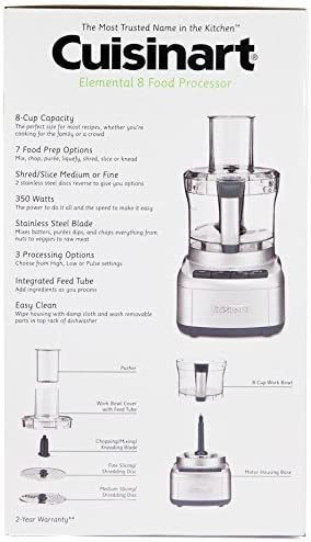Cuisinart FP-8SV Elemental 8-Cup Food Processor with 350-Watt Motor. Includes Medium to Fine Slicing Discs. Convenient Controls – High. Low. Off and Pulse. Gunmetal