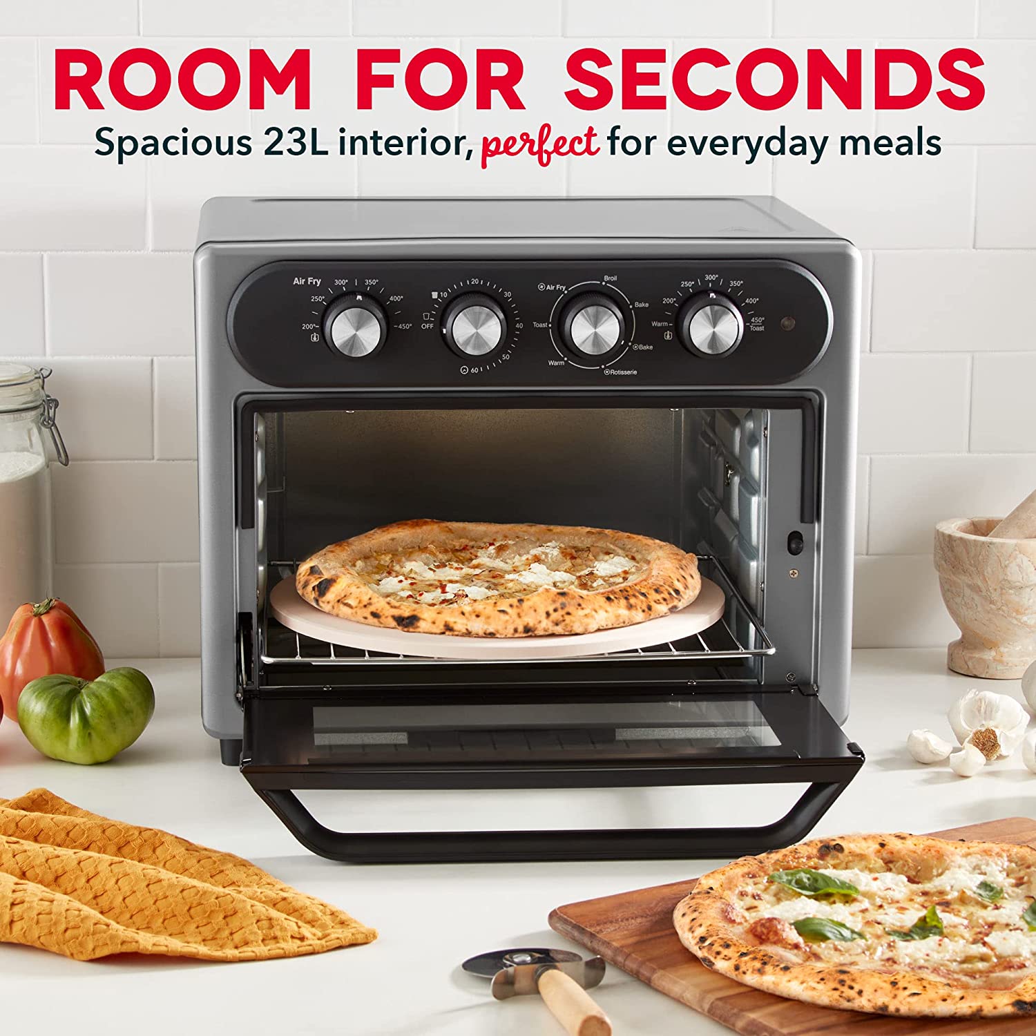 DASH Air Fry Multi Oven - 7 in 1 Convection Air Fry Oven with Non-stick Fry Basket. Baking Pan & Rack. 23L. 1500-Watt - Graphite