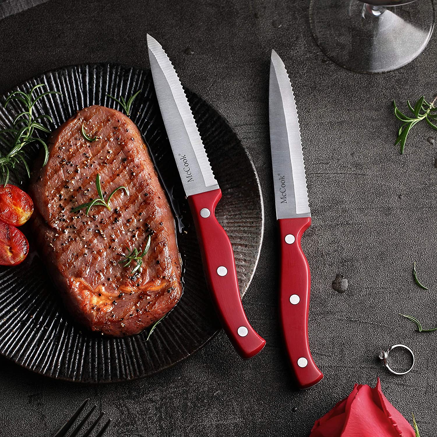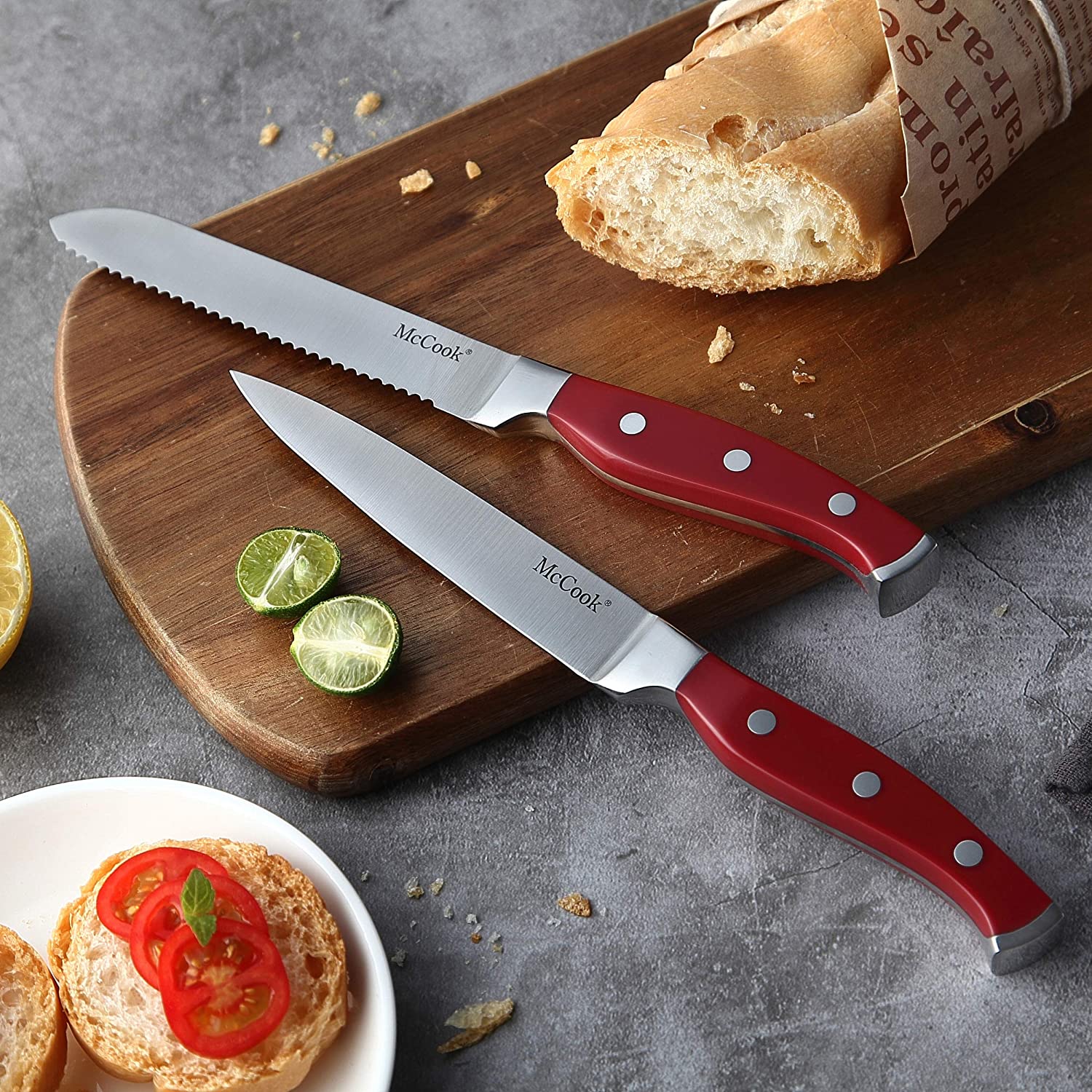 McCook® MC24 15 Pieces Stainless Steel Kitchen Knife Sets with Wooden Block. Kitchen Scissors and Built-in Sharpener. Red