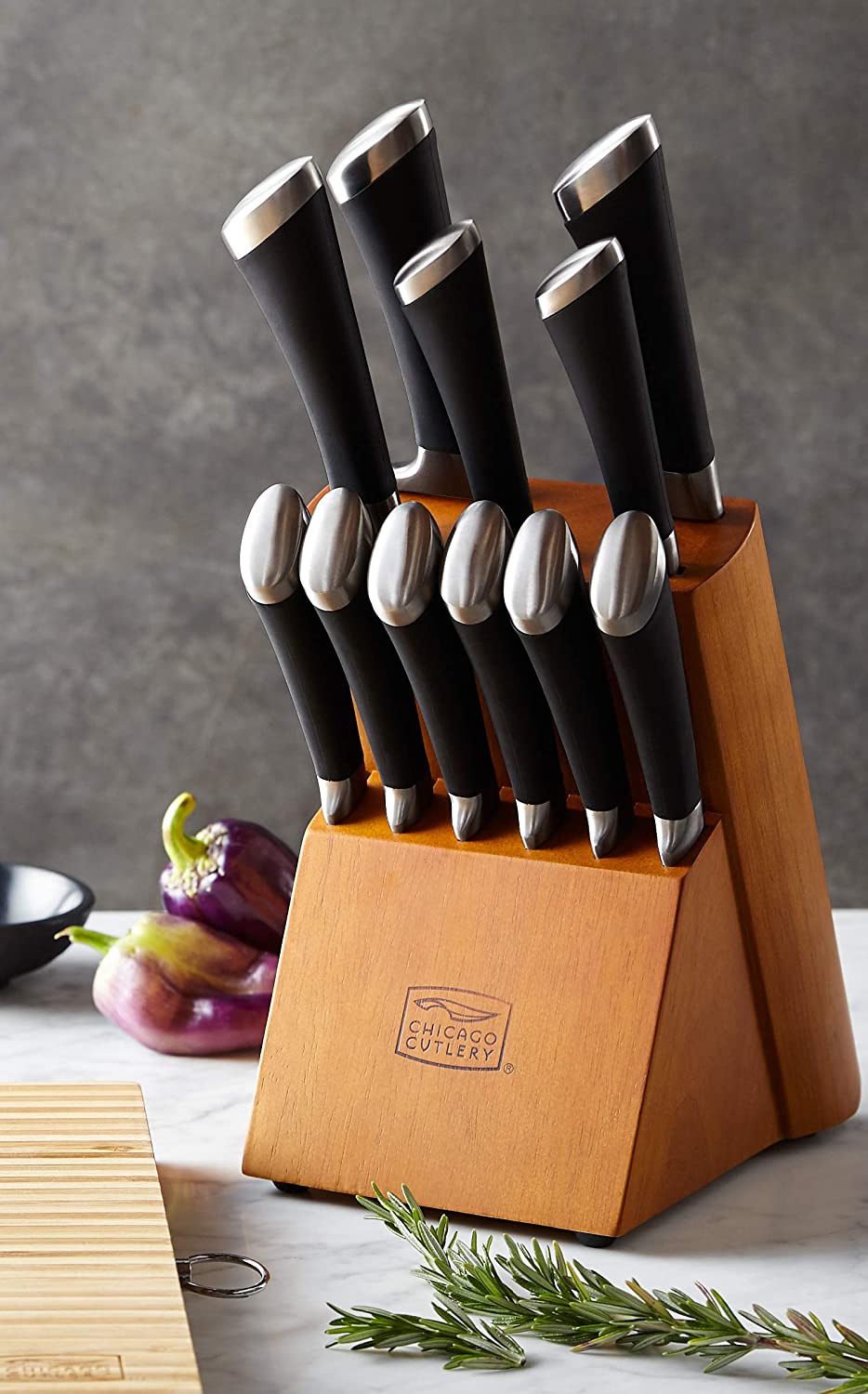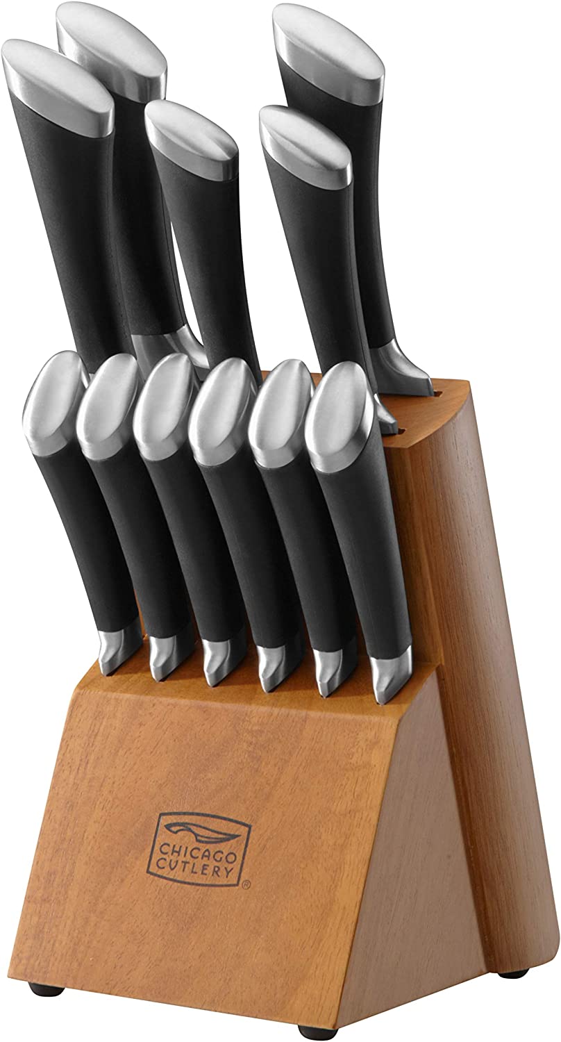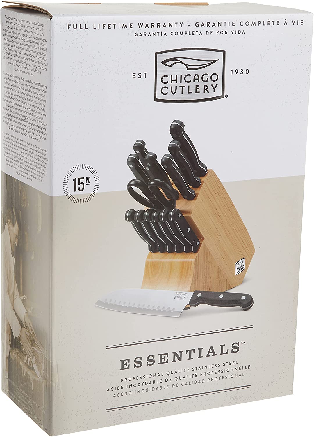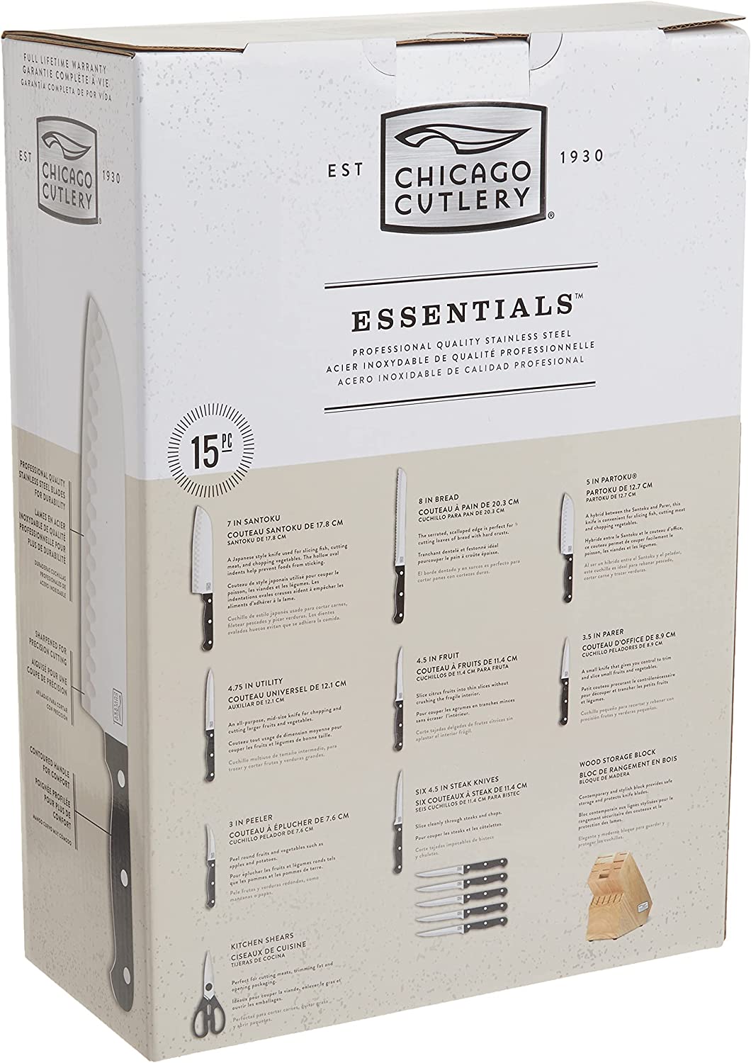 Chicago Cutlery Essentials 15 Piece Stainless Steel Kitchen Knife Set with Shears. Paring. Fruit. Utility. Santoku. Bread. and Steak Knives. Knife Set for the Kitchen with Block