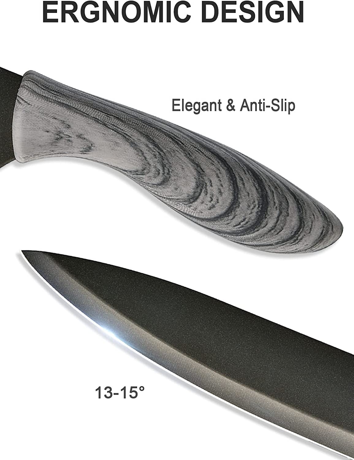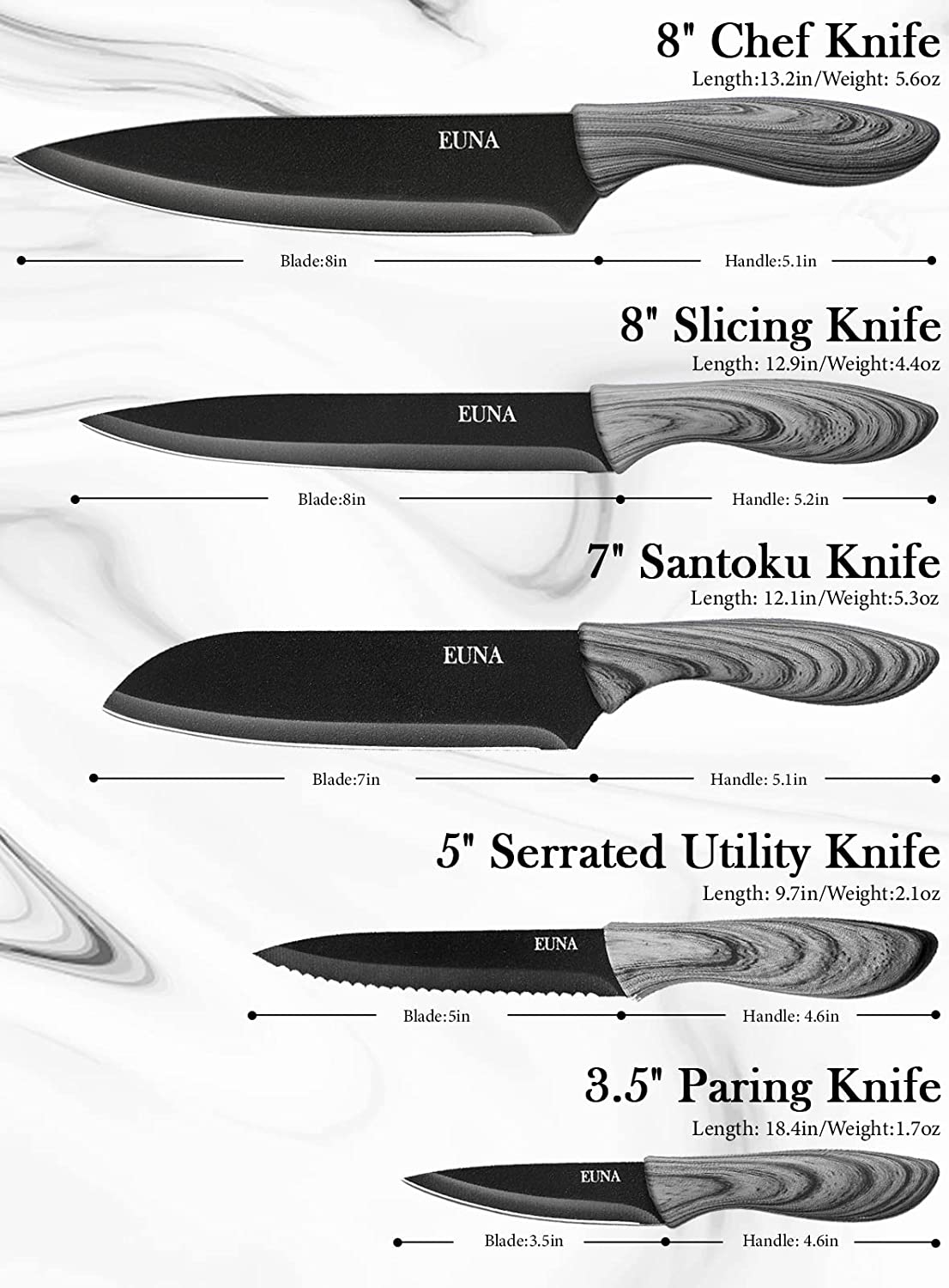 EUNA 5 PCS Kitchen Knife Set with Multiple Sizes. Ultra-Sharp Chef Cooking Knives with Sheaths and Gift Box. Chef Knife Set for Professional Multipurpose Cooking with Ergonomic Handle