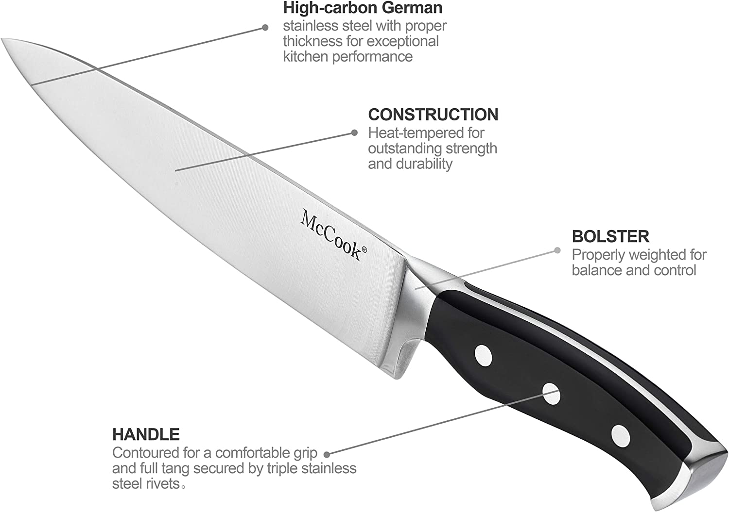 McCook® MC21 Knife Sets.15 Pieces German Stainless Steel Knife Block Sets with Built-in Sharpener