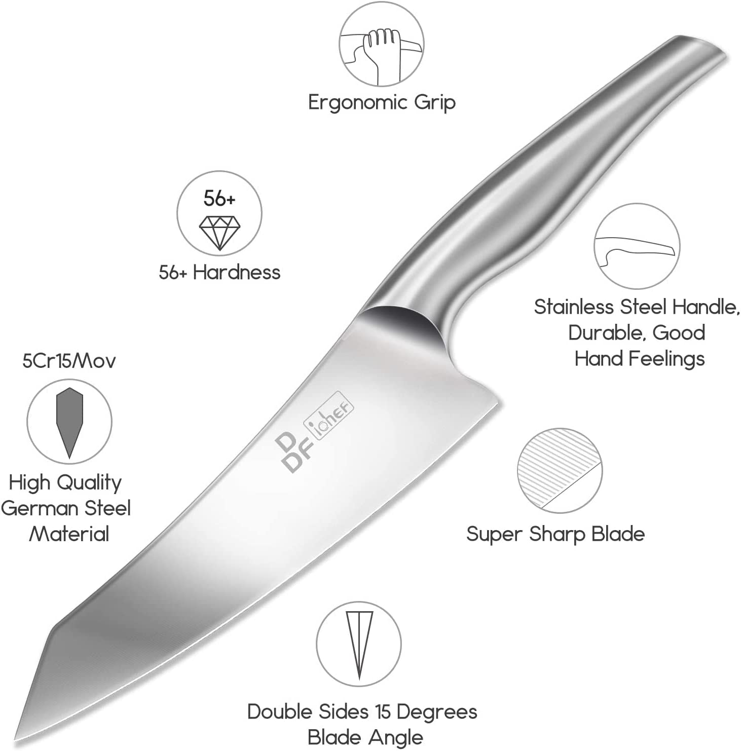 DDF iohEF Kitchen Knife Set with Block. 7 Piece Premium High Carbon Stainless Steel Knives Set with Knife Sharpener. Ultra Sharp Knife Block Set