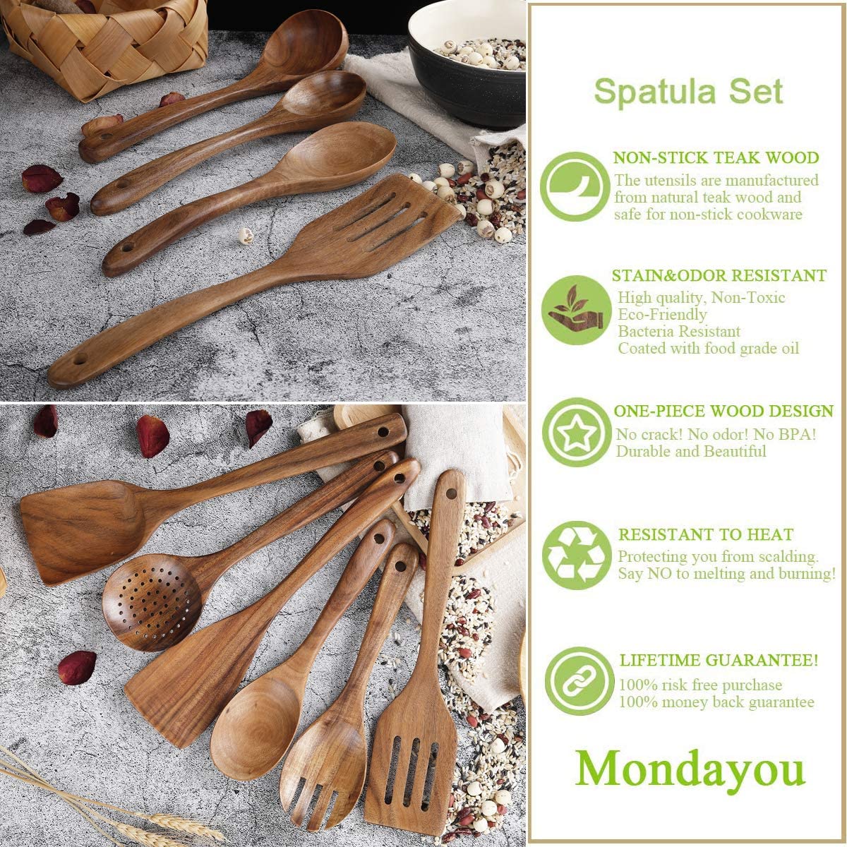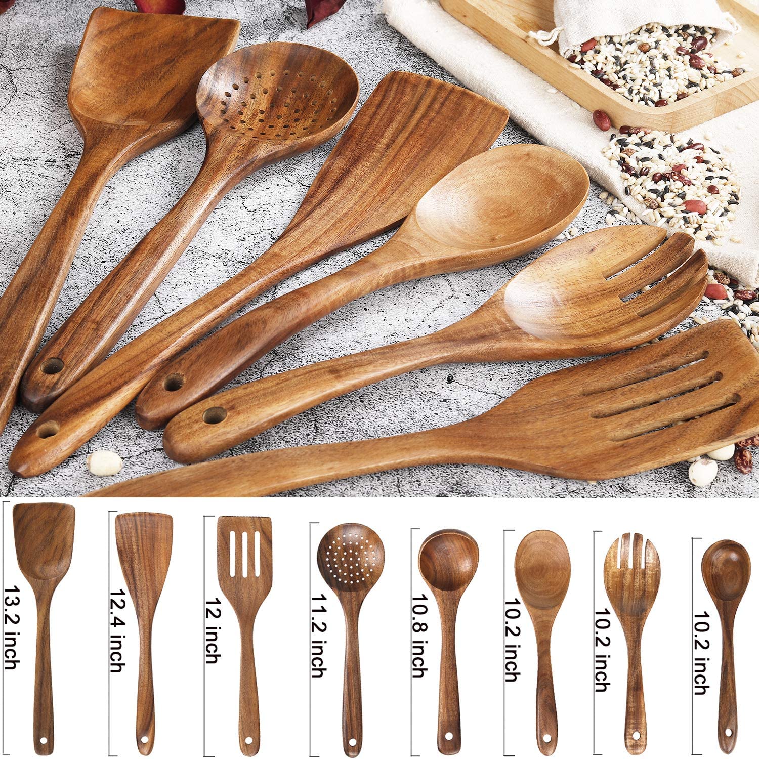 Wooden Spoons for Cooking. Nonstick Kitchen Utensil Set (Teak 8 Pack)