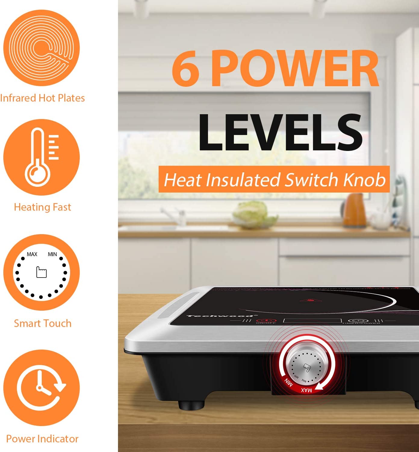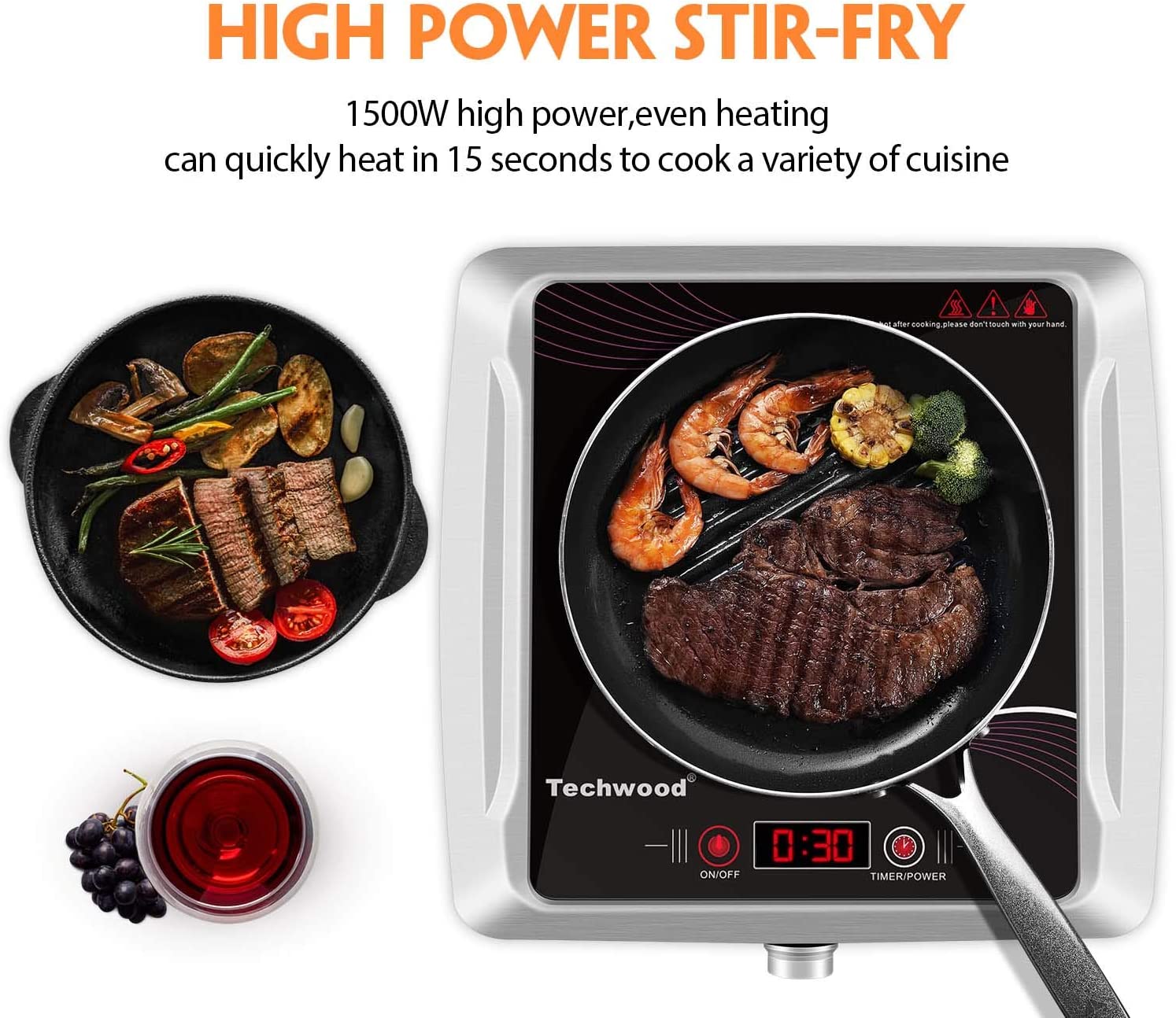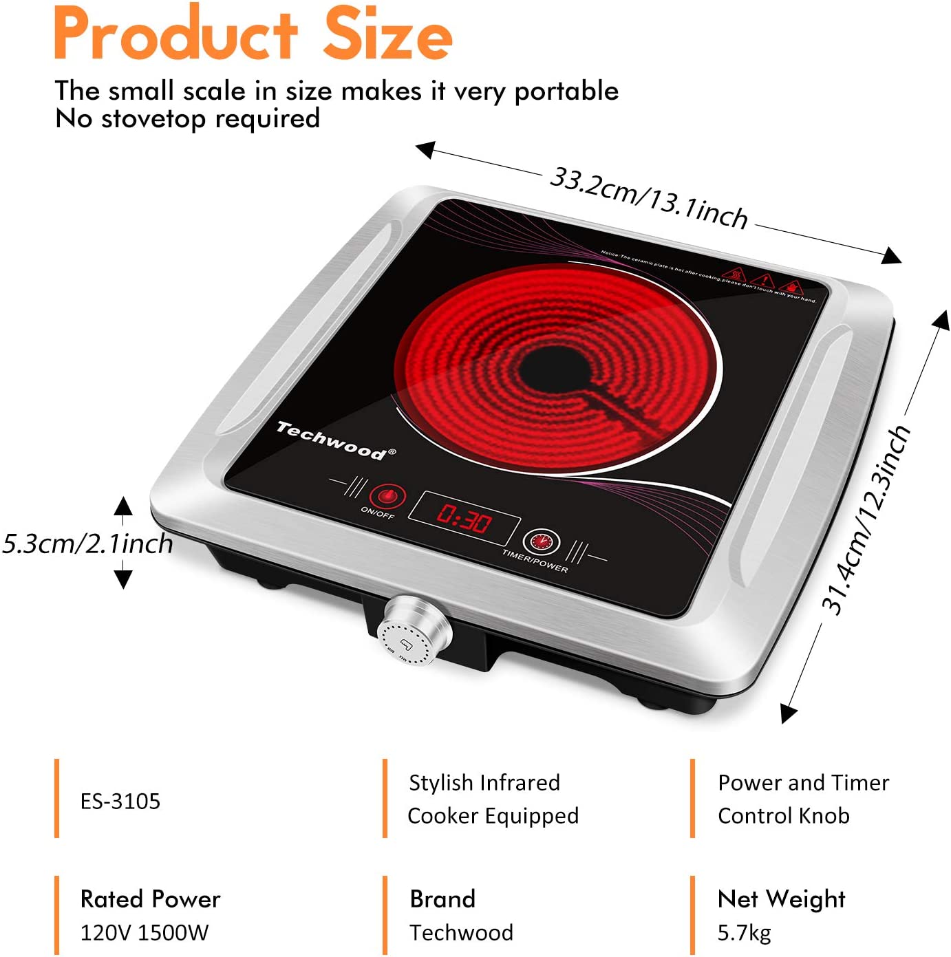 Techwood Hot Plate Electric Stove Single Burner Countertop Infrared Ceramic Cooktop. 1500W Timer and Touch Control. Portable Compatible All Cookware. Ceramic Glass & Stainless Steel Easy to Clean