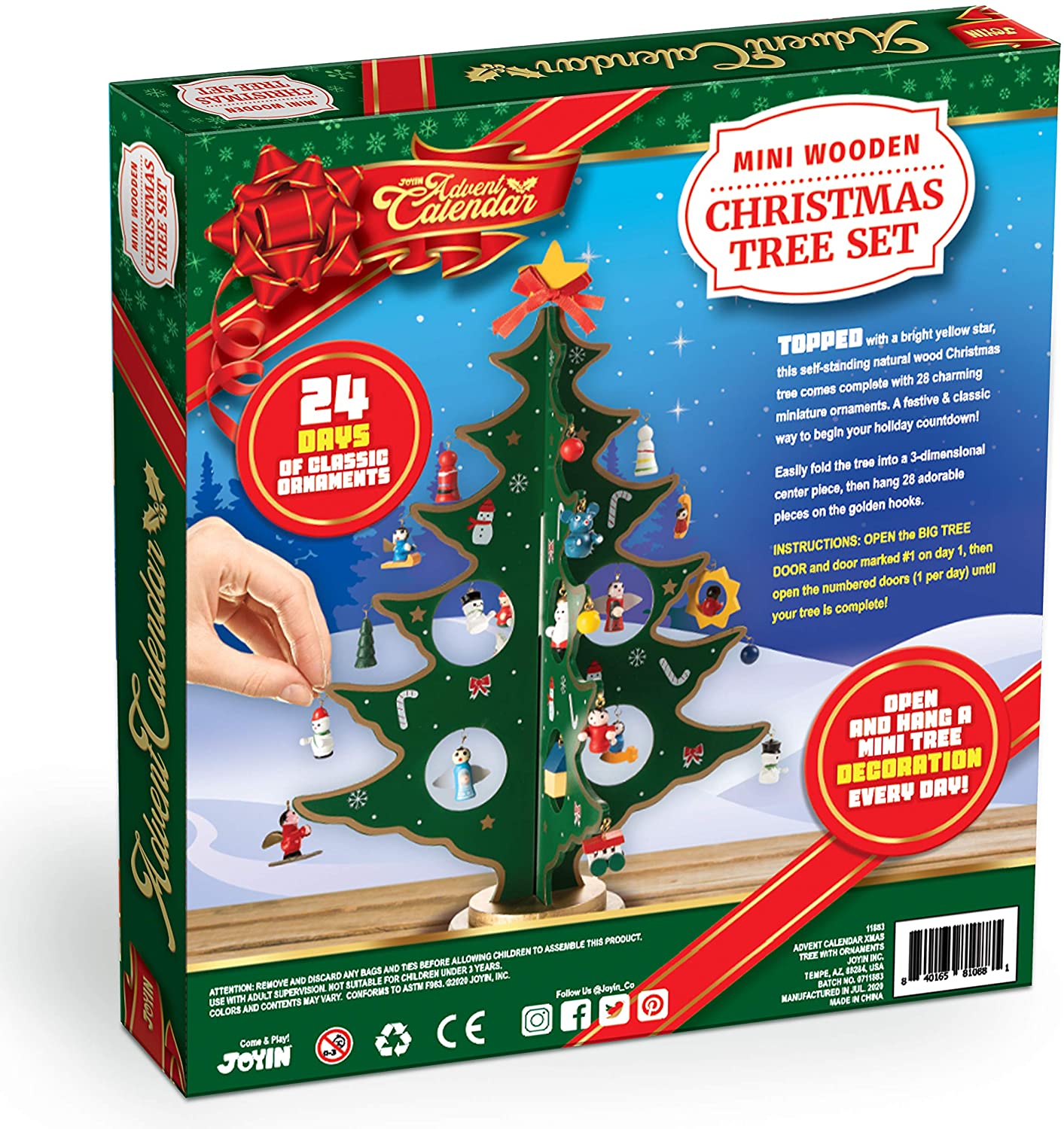 JOYIN Christmas 24 Days Countdown Advent Calendar with a Wooden Christmas Tree