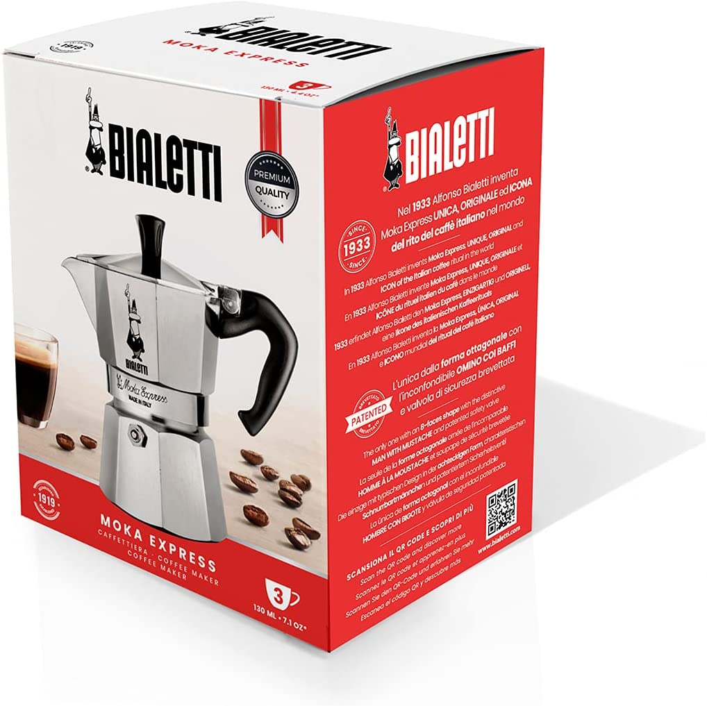 Bialetti Moka Express Iconic Stovetop Espresso Maker. Makes Real Italian Coffee. Moka Pot 3 Cups (4.3 Oz - 130 Ml). Aluminium. Silver