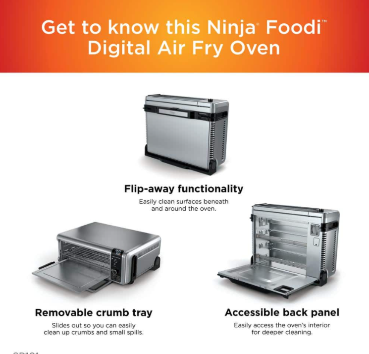 NINJA SP101 Stainless Steel Foodi Digital Air Fry Oven. Convection Oven. Toaster. Air Fryer. Flip-Away for Storage