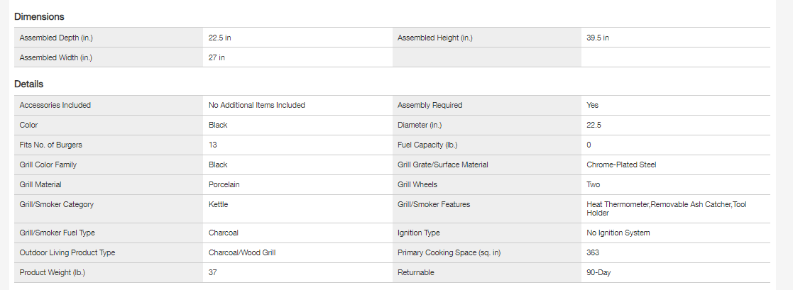 Weber 14401001 22 in. Original Kettle Premium Charcoal Grill in Black with Built-In Thermometer
