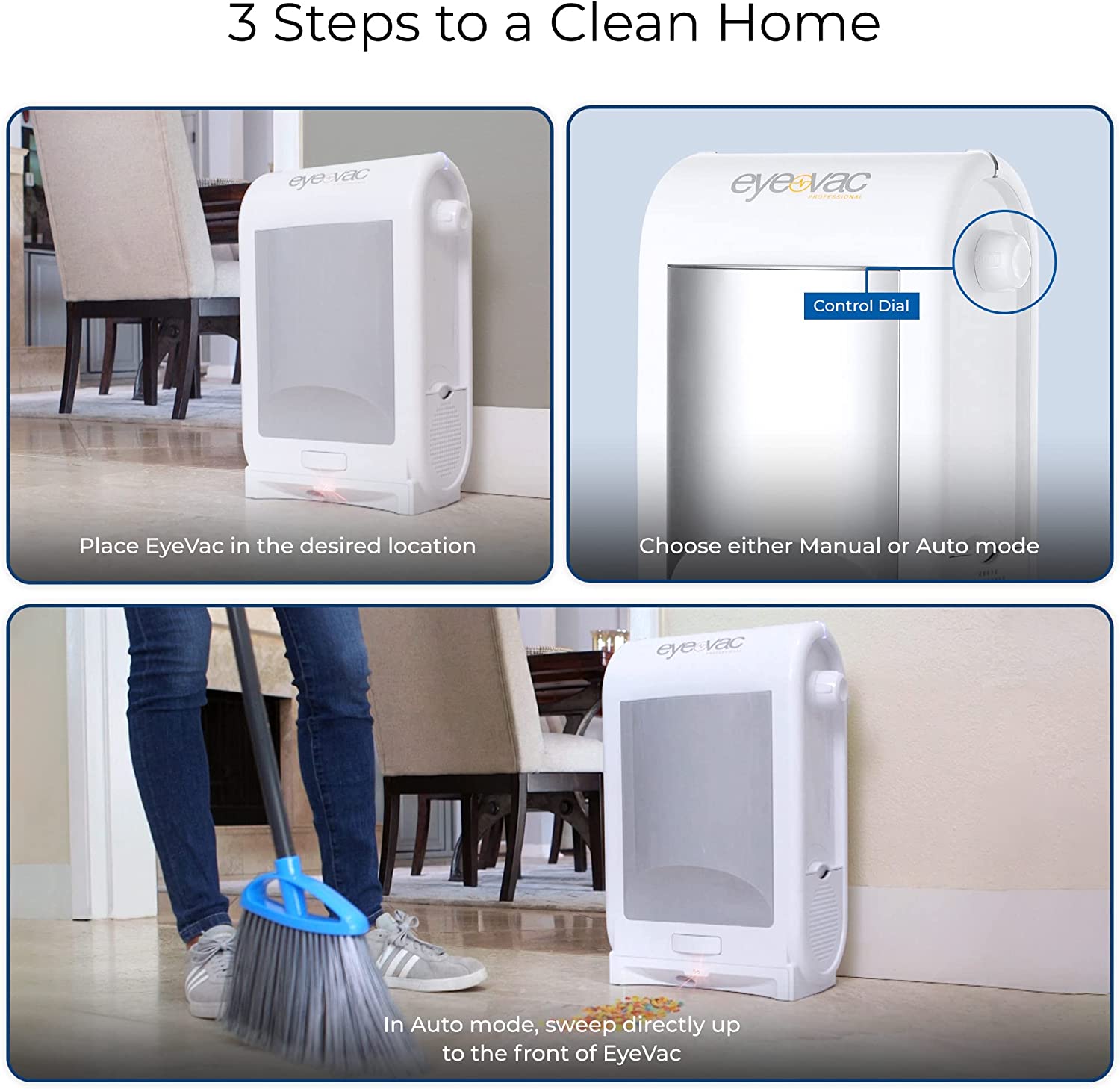 EyeVac PRO Touchless Stationary Vacuum - 1400 Watts Professional Vacuum with Active Infrared Sensors. High Efficiency Filtration. Bag-Less Canister (Designer White)