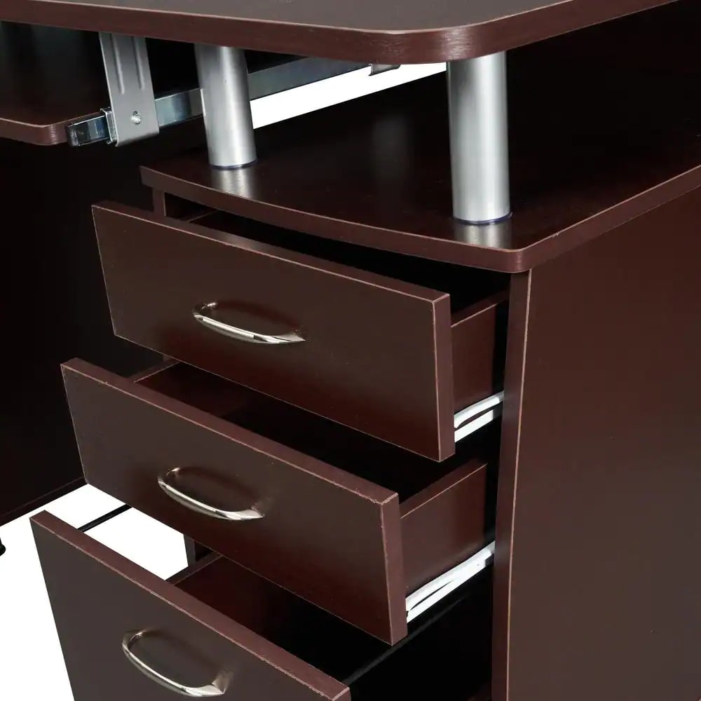 TECHNI MOBILI 48 in. Rectangular Chocolate 3 Drawer Computer Desk