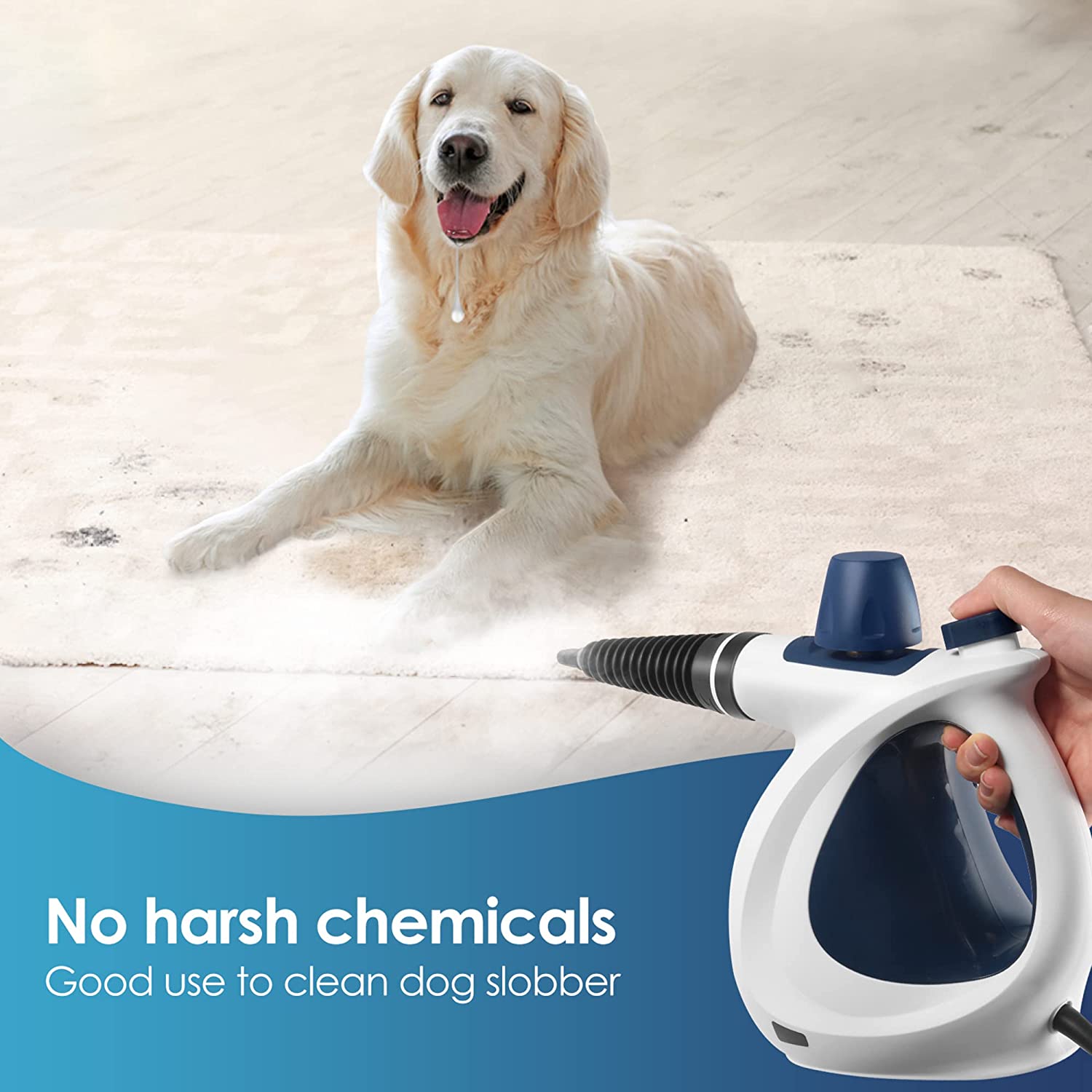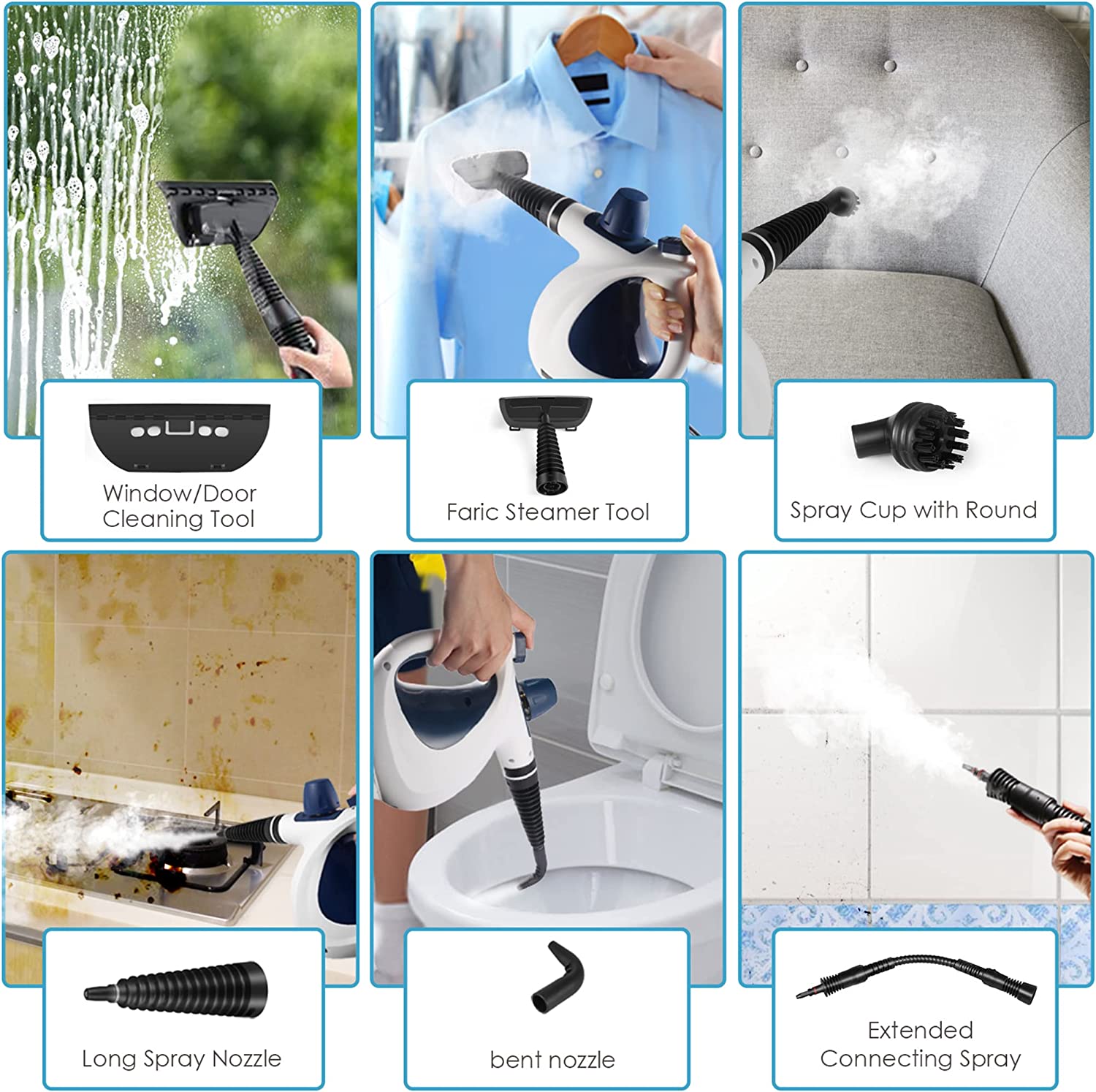 MOSCHE WHL-609 Handheld Pressurized Steam Cleaner with 11-Piece Accessory Set. Multi-Surface Steamer for Cleaning. All Natural Steam Cleaner for Car. Floor. Upholstery. Grout and Tile