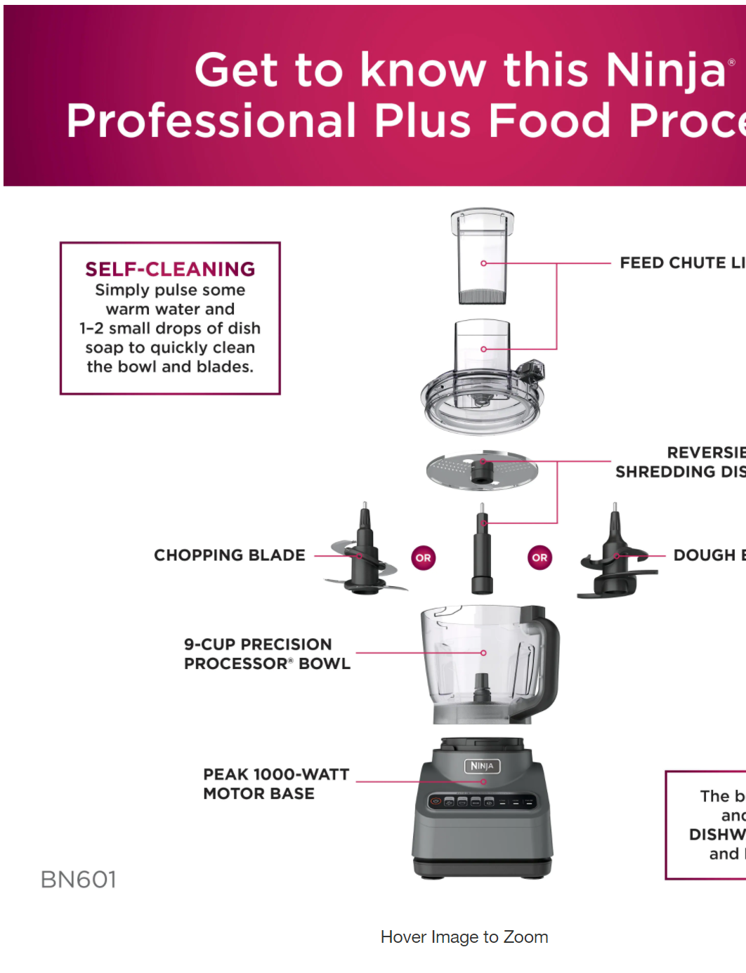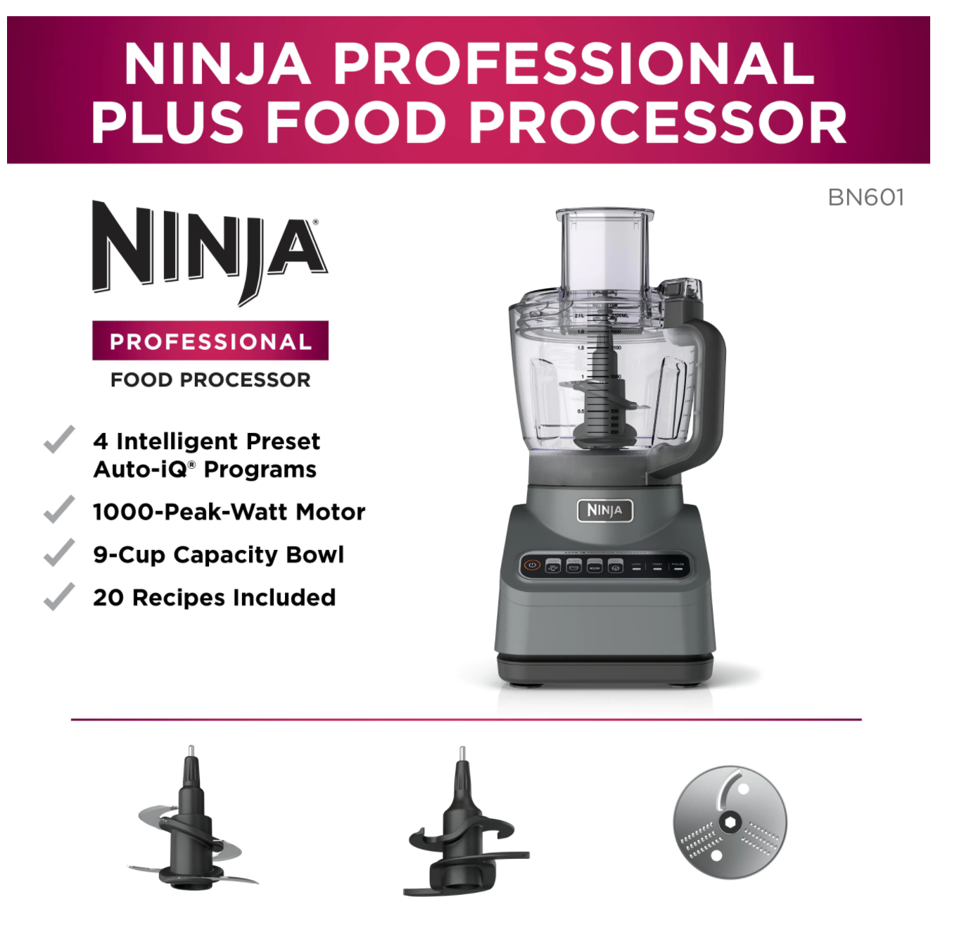NINJA BN601 Professional Plus 9-Cup 4 Speed Silver Food Processor with Auto iQ