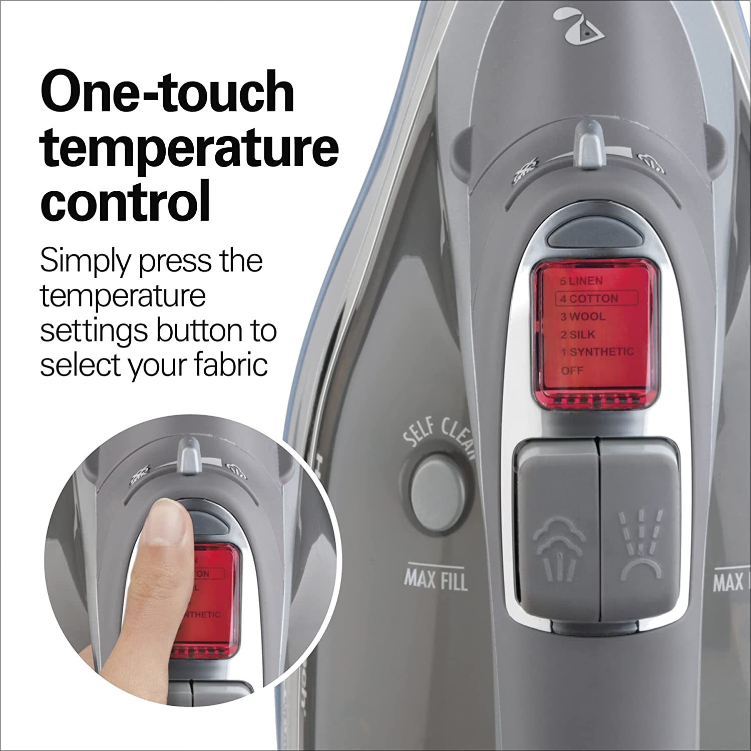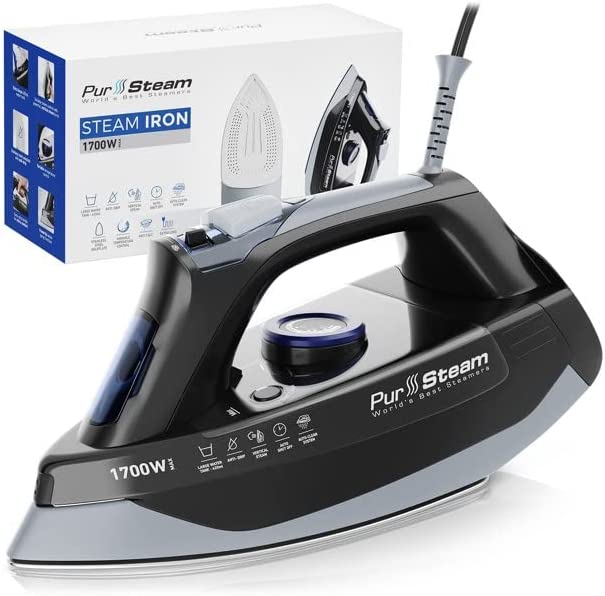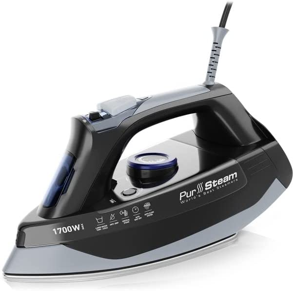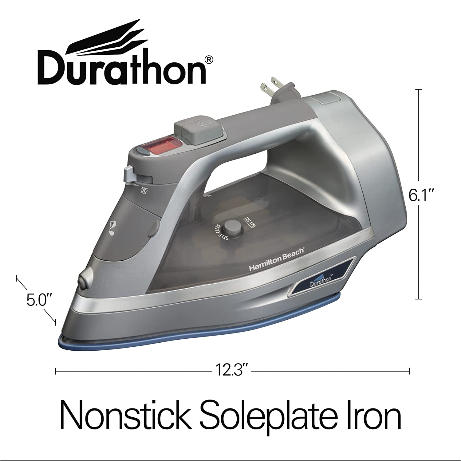 Hamilton Beach Steam Iron & Vertical Steamer with Scratch-Resistant Durathon Soleplate. 1700 Watts. Digital Temperature Control. Retractable Cord. 3-Way Auto Shutoff. Anti-Drip. Self-Cleaning (19901)