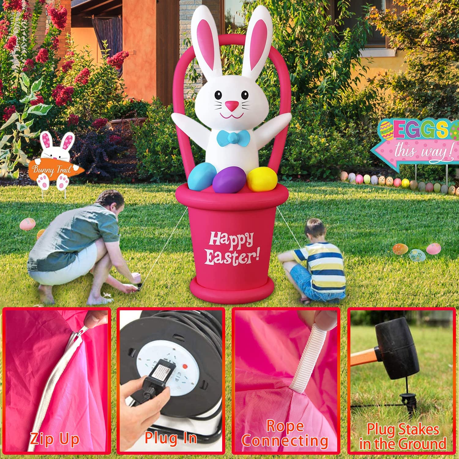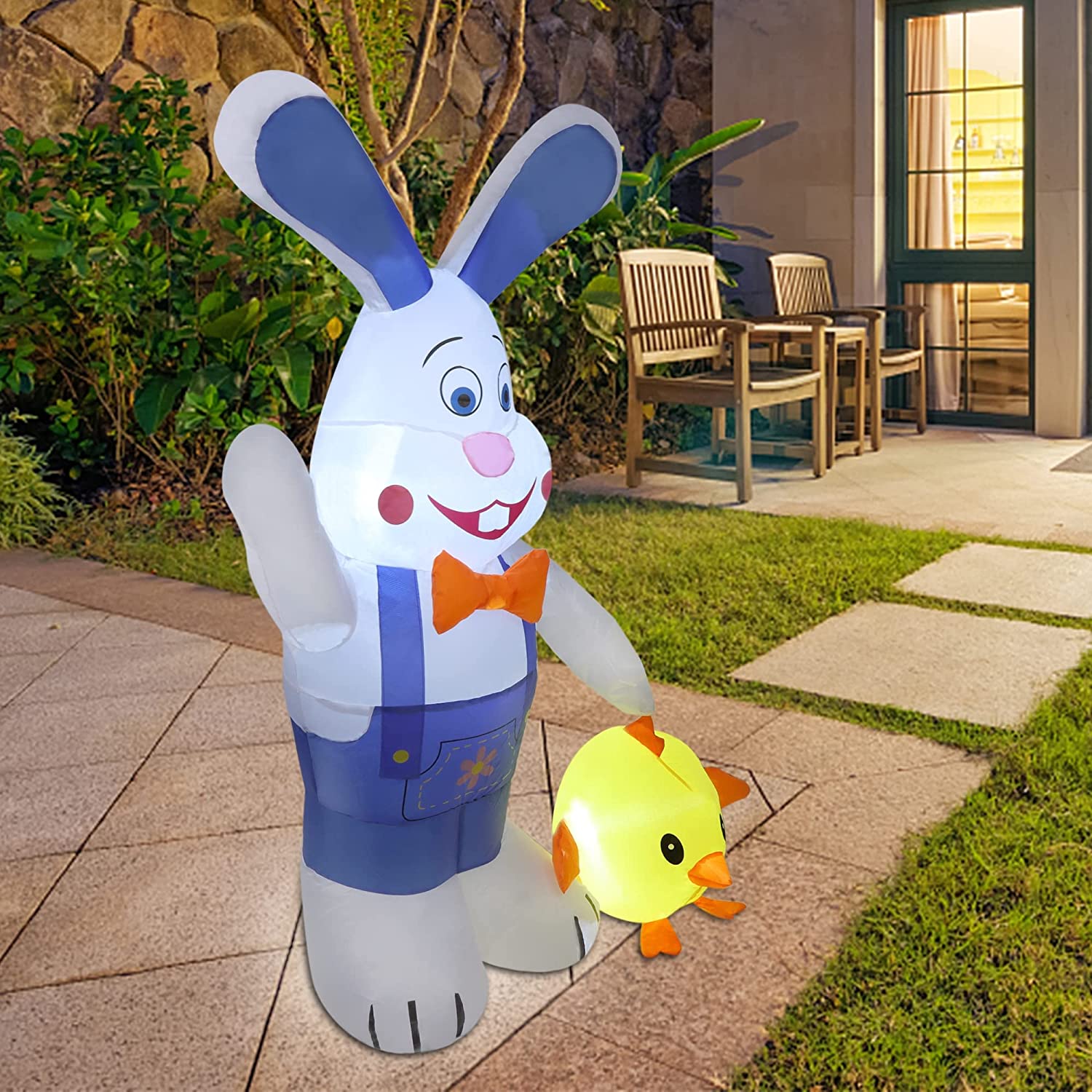 OuToorDoor Easter Decorations Inflatable Easter Bunny - 7Ft Built-in Led Easter