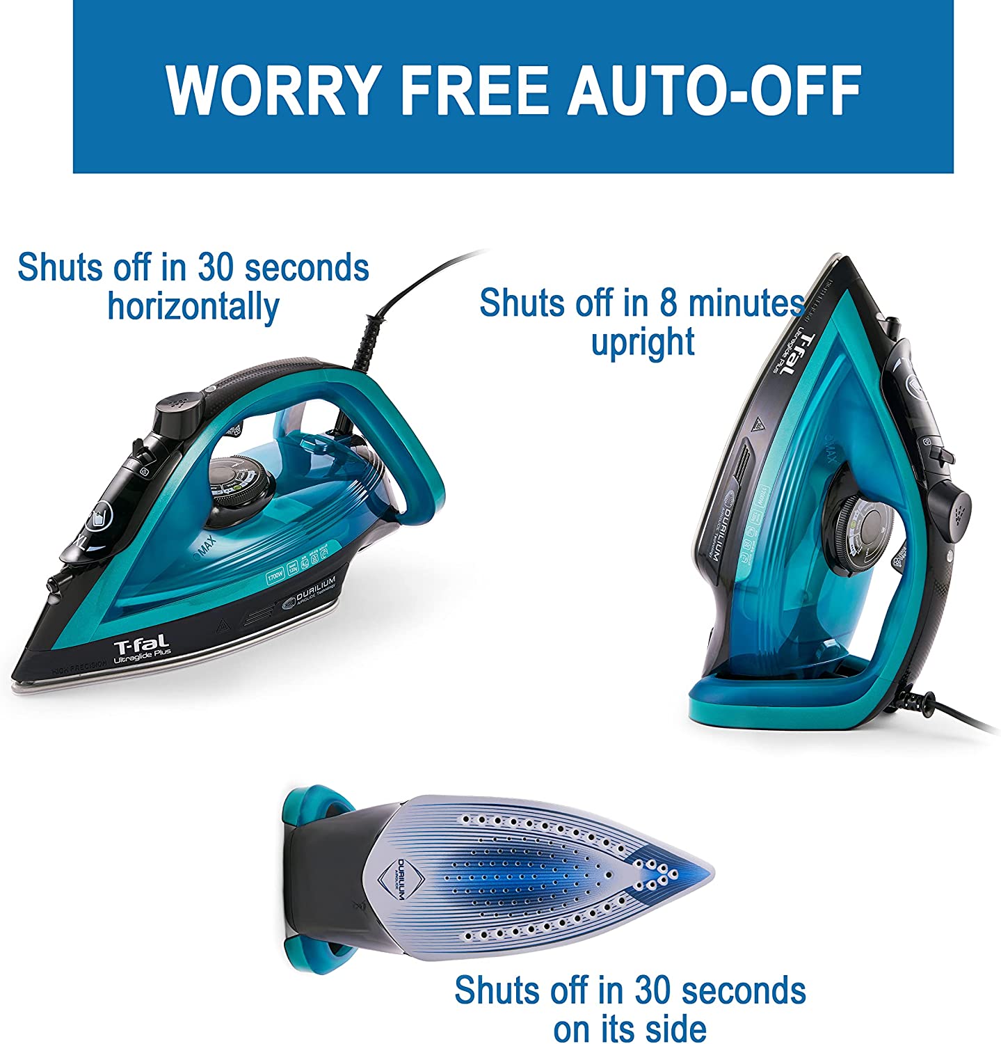 T-fal Ultraglide Plus Steam & Garment Iron with Durilium Soleplate. 1800 watts. Teal
