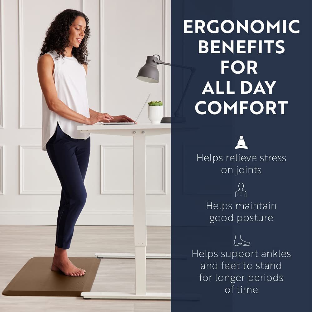 KANGAROO 3/4″ Thick Superior Comfort. Relieves Pressure. All Day Ergonomic Stain Resistant Floor Rug Anti Fatigue Cushion Mat. Durable Standing Desk. Foam Pad Mats Kitchen. Office. 20×32. Mocha