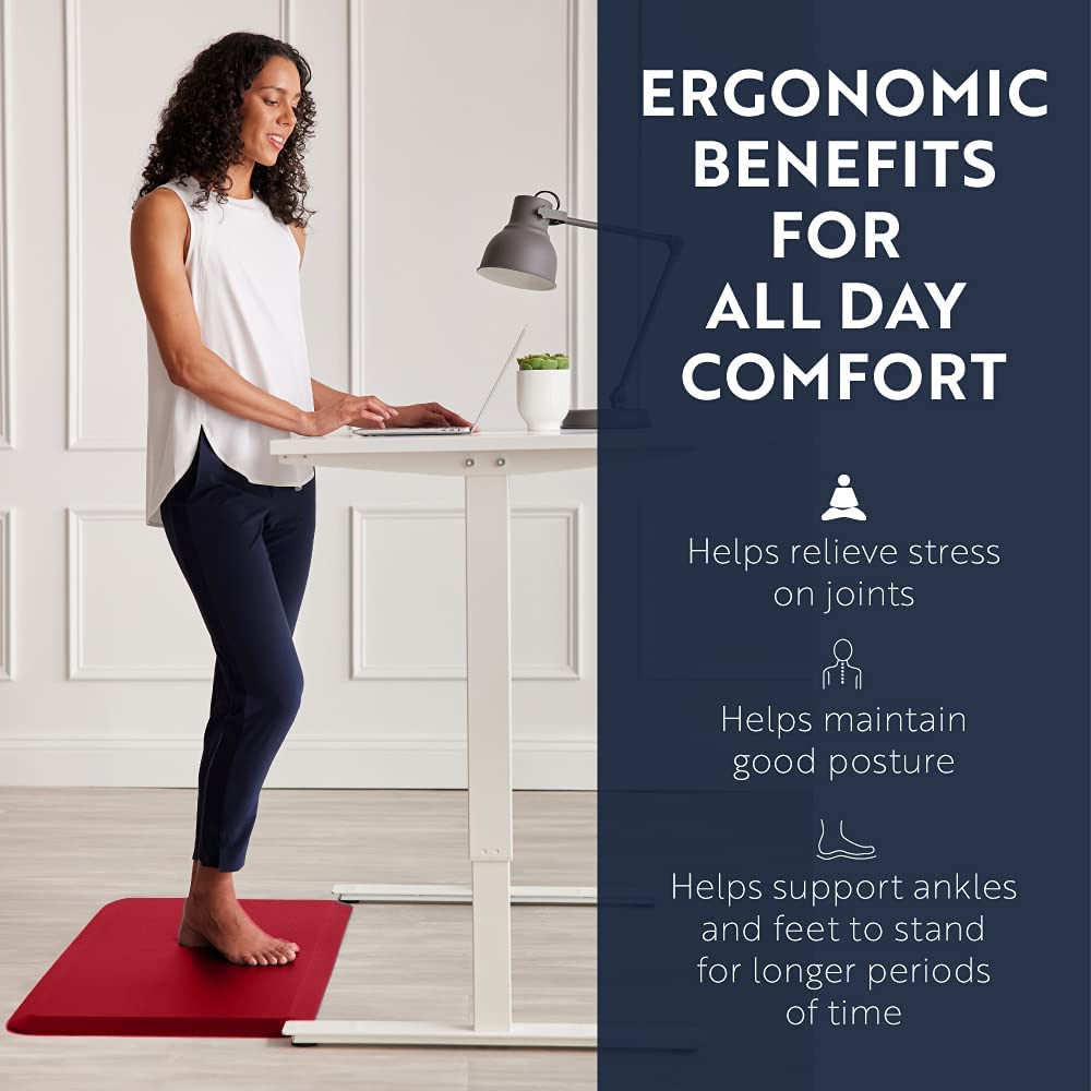 KANGAROO 3/4″ Thick Superior Comfort. Relieves Pressure. All Day Ergonomic Stain Resistant Floor Rug Anti Fatigue Cushion Mat. Durable Standing Desk. Foam Pad Mats Kitchen. Office. 20×32. Red